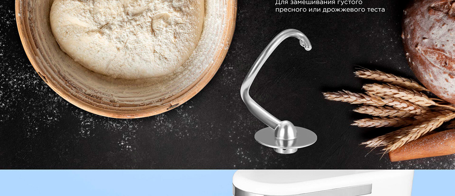 | Насадки | венчик для взбивания, лопатка, крючки для замешивания теста |