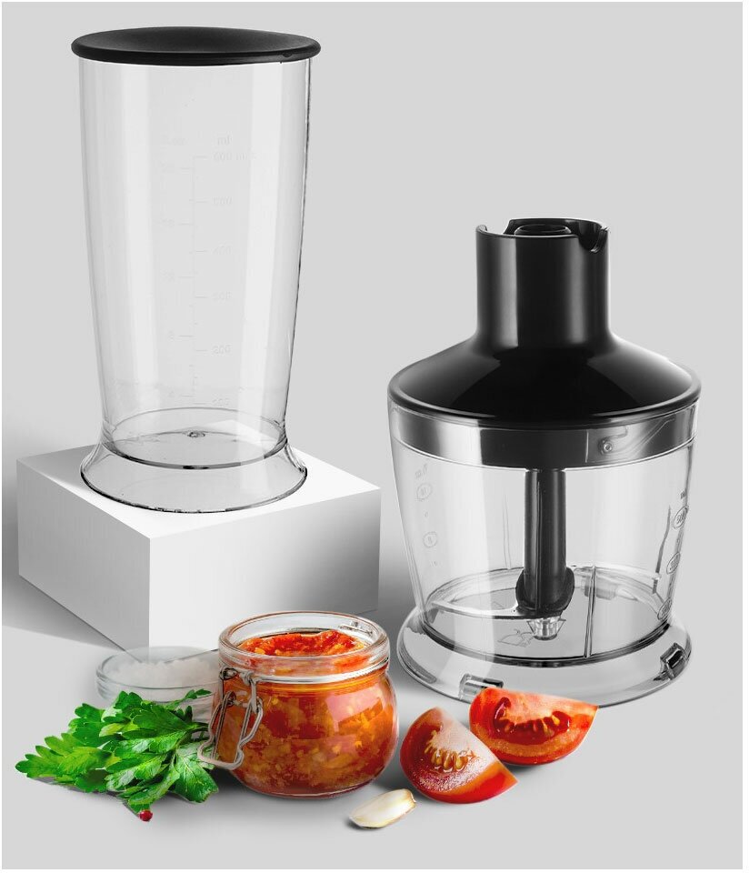 | В комплекте | венчик (с переходником), измельчитель, мерный стакан (600 мл), крышка к стакану, чаша (с крышкой), насадка-блендер |