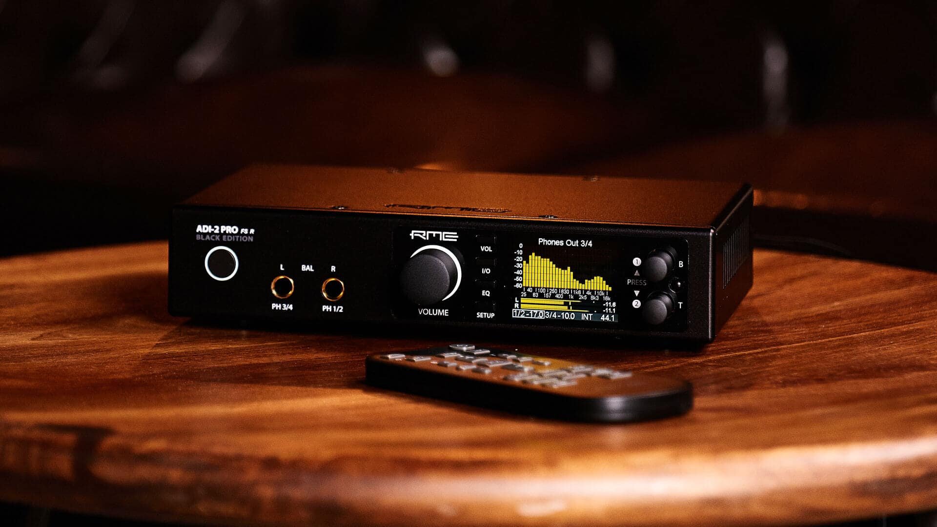 RME - представляет из себя аудиоинтерфейс, который может использоваться в качестве конвертера, usb интерфейса и усилителя для наушников. RME ADI-2 Pro FS R отличается от прошлой модели улучшенными техническими характеристиками и наличием чипа AK4493 вместо AK4490. Помимо этого, новая модель обзавелась новым пультом дистанционного управления MRC, получившим несколько дополнительных функций. Преобразователь оснащен 2 мощными выходами для наушников c отдельными усилителями и низким уровнем шума, 2 XLR/TRS входами, 2 XLR выходами, 2 TRS выходами, входами и выходами SPDIF/AES3, USB портом. Из элементов управления у устройства предусмотрены 4 кнопки, 3 регулятора и IPS дисплей. Управление настройками также возможно с внешнего пульта, на который можно дополнительно запрограммировать определенные команды по усмотрению пользователя. К другим особенностям модели относятся: схема подавления джиттера SteadyClock III, режим Advanced Balanced, наличие встроенных DSP эквалайзеров и фильтров, поддержка форматов PCM / DSD и режимов частоты дискретизации до 32 бит 768 кГц. Технические характеристики: Аналоговые входы сигнал/шум: 124 дБА кг+шум: -116 дБ (0.00016%) Аналоговые выходы сигнал/шум: 124 дБА кг+шум: -115 дБ (0.00018%) Выходы для наушников сигнал/шум: 123 дБАкг+шум: -107 дБ (0.00045%)