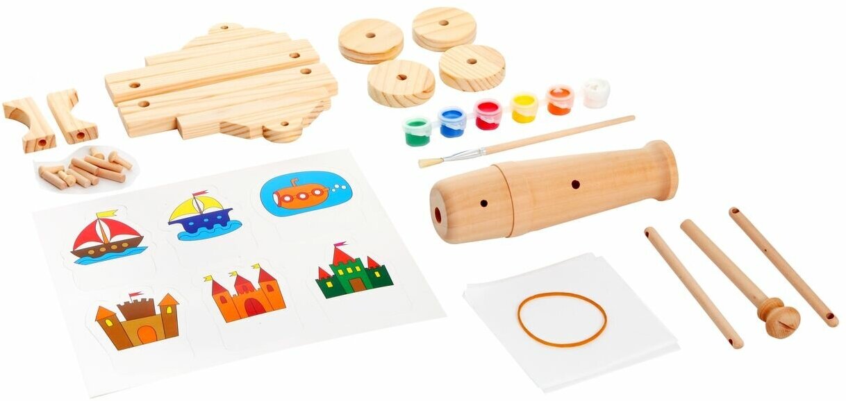 "Пушка" Bondibon - это удивительный набор для моделирования из дерева. который позволит сделать действующую модель древнего разрушительного оружия - пушки. Сначала следует собрать деревянные заготовки и скрепить их с помощью входящих в набор деревянных креплений-штифтов. После того, как пушка собрана, ее следует раскрасить, ведь любимое оружие должно быть не только мощным и опасным, но и красивым!. Краски в наборе водонепроницаемы, так что использовать пушку можно будет в любом месте и в любую погоду.