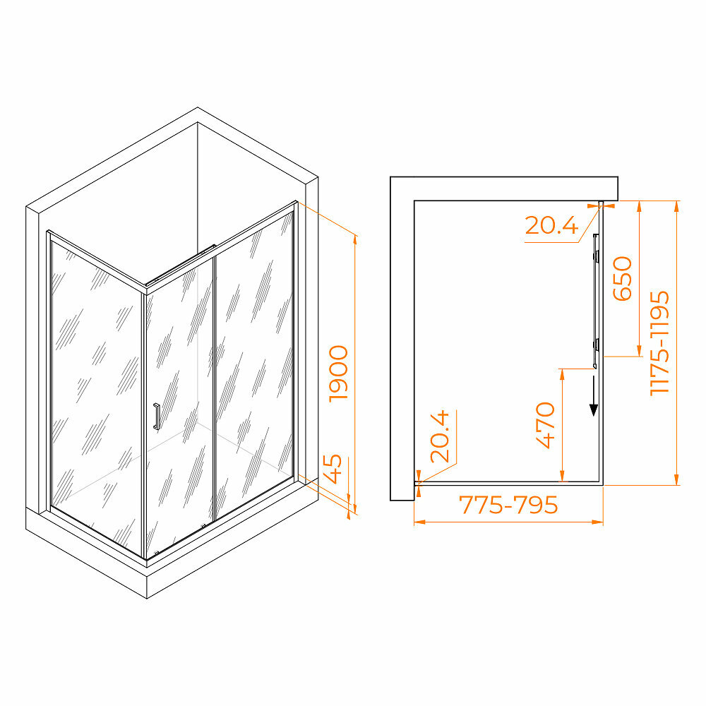 - Размеры (ШхВхД): 1195х1900х795 мм.