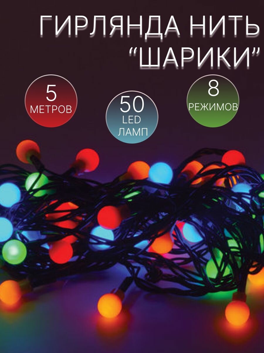Модель: Электрогирлянда светодиодная Шарики 50 ламп 5 м