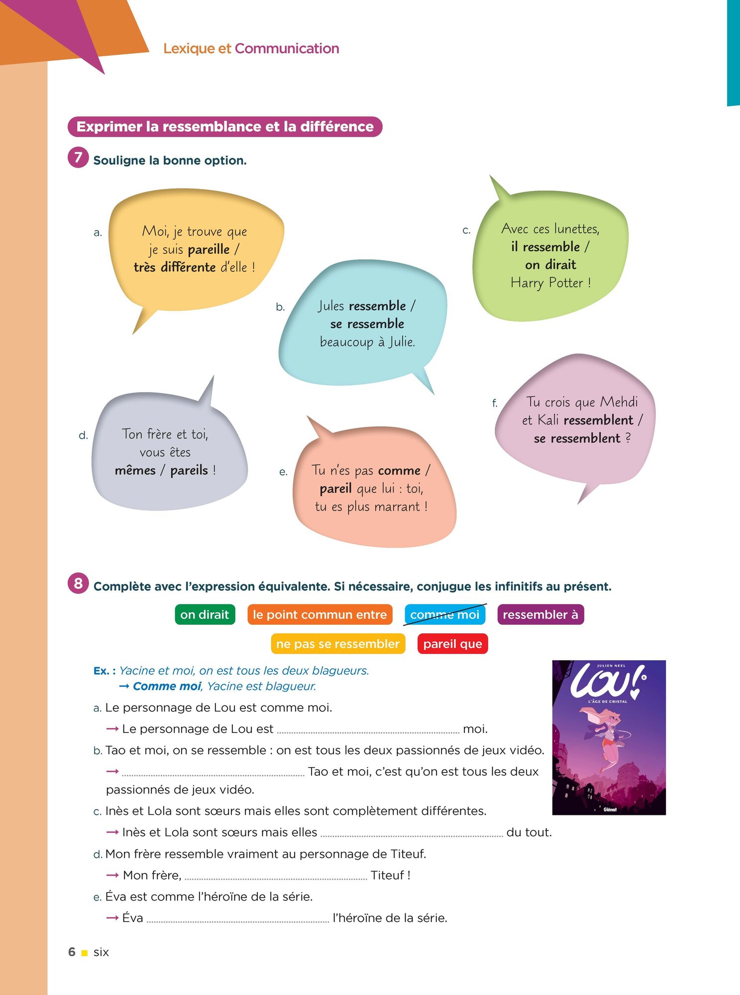 Un travail linguistique facilite grace a des boites a outils dans les lecons, des pages «Lexique et Communication» et une approche tres progressive pour favoriser la decouverte de la langue et la memorisation.