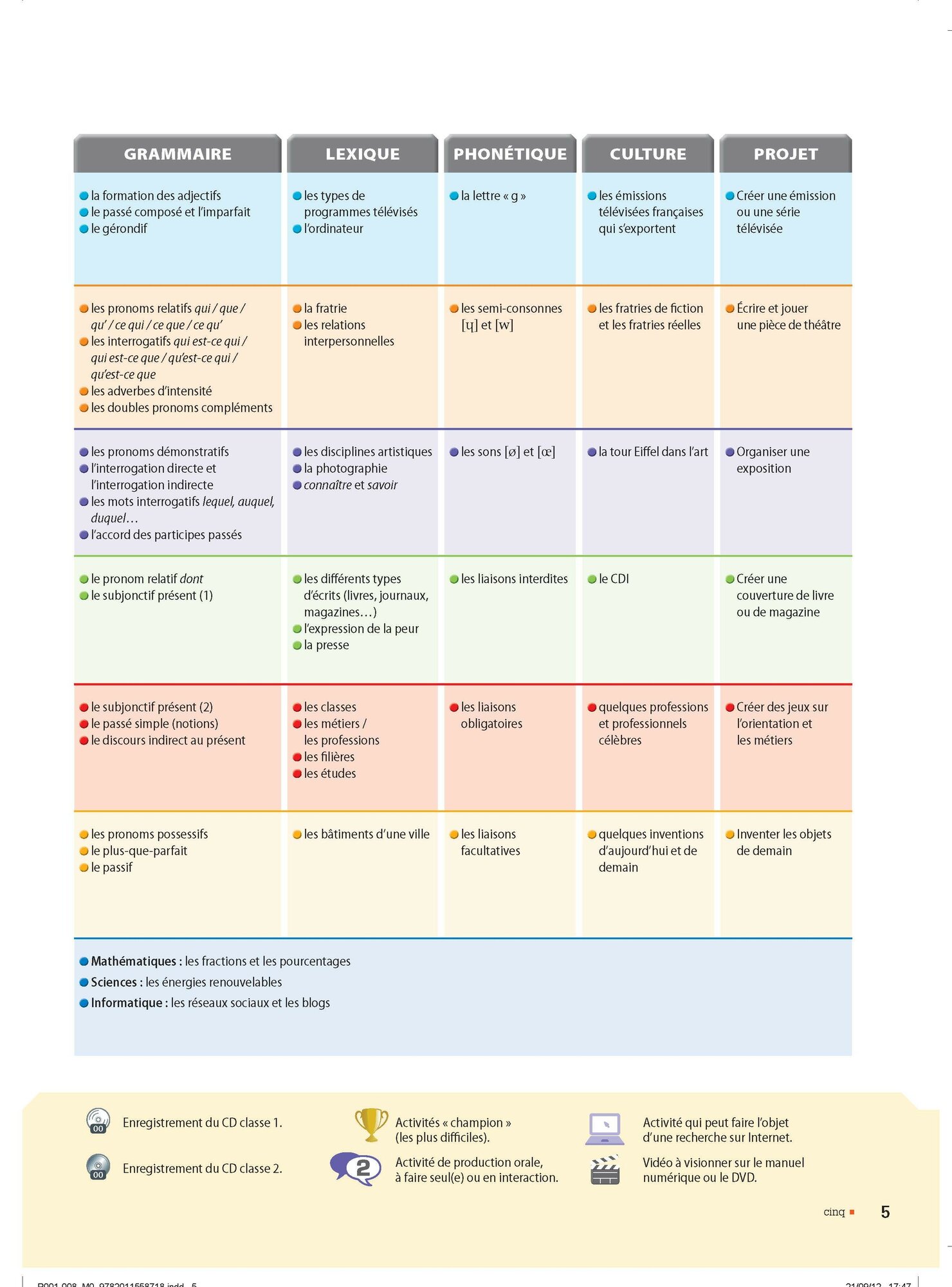 en fin d'ouvrage, un module complet sur "Mes matieres en francais"