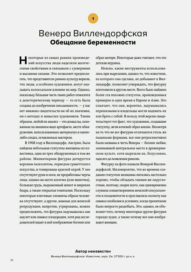 В этой книге мы рассмотрим сто совершенно разных произведений искусства. Некоторые их них широко известны, другие чуть менее узнаваемы, но мы исследуем их все на предмет того, где, почему, когда и как они были созданы. Все представленные здесь произведения искусства — от самых ранних из известных нам до созданных совсем недавно — по-своему удивительны, и эта книга анализирует значение и множественные толкования авторского замысла, уделяя при этом внимание происхождению, опыту и убеждениям художников, причинам, по которым они выбирали те или иные материалы, целям, которые они перед собой ставили, и обществу, в котором они жили. Если вам случалось смотреть на произведение искусства и задаваться вопросом "Как это вообще понимать?", — эта книга даст вам ответ.