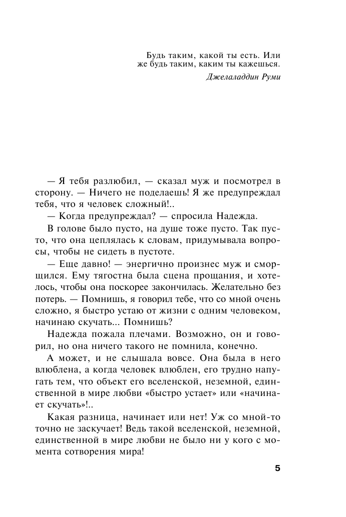 "Я тебя разлюбил, - сказал муж и посмотрел в сторону. - Ничего не поделаешь! Я же предупреждал тебя, что я человек сложный!.." Вот так в одно-единственное мгновенье все рухнуло… Теперь нужно будет учиться жить заново, жить одной, жить без него… Только любимая работа помогала забыть этот кошмар и не сойти с ума. А отель, где Надежда возглавляла службу портье, готовился к визиту ни много ни мало… американского президента. Введены строжайшие меры безопасности. Всех сотрудников тщательно проверяют. Однако Дэн Уолш, глава службы безопасности президента, с ужасом понимает: Надежда Звонарева, которая - вот дьявол! - ему так сильно нравится, очень подозрительно себя ведет. И ее нужно проверить в первую очередь…