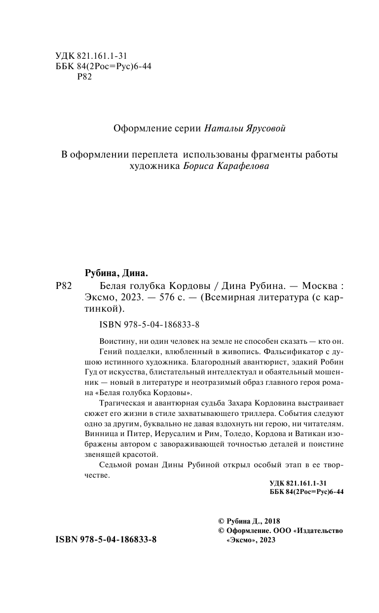 Книга: Белая голубка Кордовы (Рубина Дина Ильинична); ООО "Издательство "Эксмо", 2023