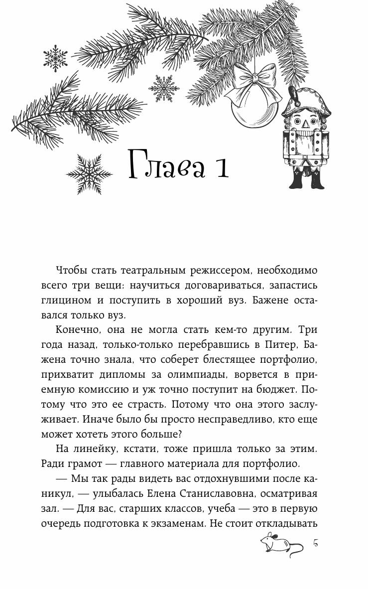 Она — самоуверенная выскочка, одержимая мечтой. Он — отпрыск влиятельной театральной династии. Оба жаждут победы, и оба «не соответствуют формату». Именно так звучит ответ организаторов конкурса, когда герои отправляют им свои сценарии. Теперь, чтобы получить хотя бы шанс на победу, Бажене и Феликсу остаётся только одно — объединиться и поставить «Щелкунчика и Мышиного короля» Эрнста Гофмана. Вдвоём. В качестве сорежиссёров.