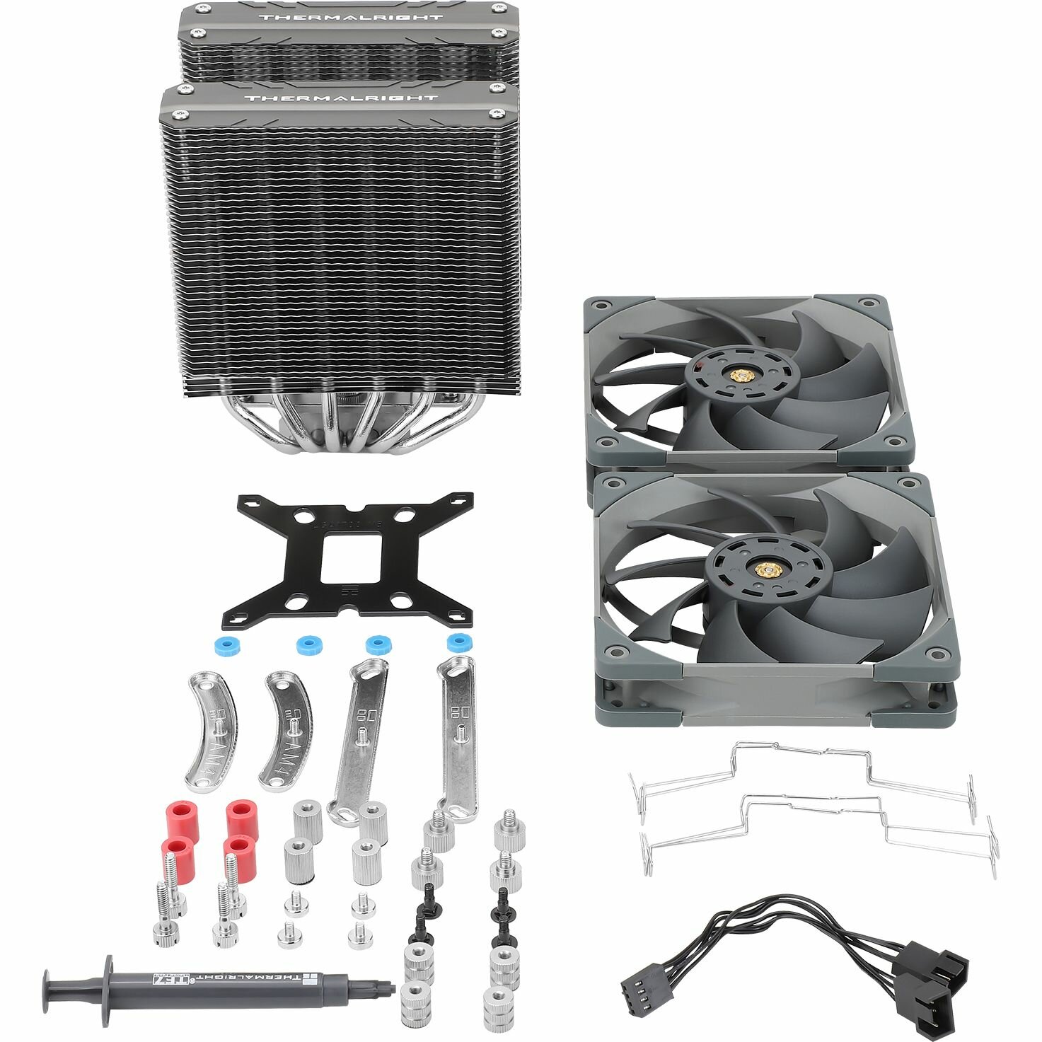 Кулер оснащен двумя одинаковыми 120-мм управляемыми вентиляторами Thermalright TL-C12 PRO-G с гидродинамическими подшипниками. Максимальная частота вращения крыльчатки составляет 1850 об./мин; производительность при этом достигает 139,3 кубометра в час, а уровень статического давления — 2,1 мм водяного столба. Уровень шума при работе не превышает 29,6 дБ (А). Управление скоростью вращения осуществляется методом широтно-импульсной модуляции (ШИМ, PWM).