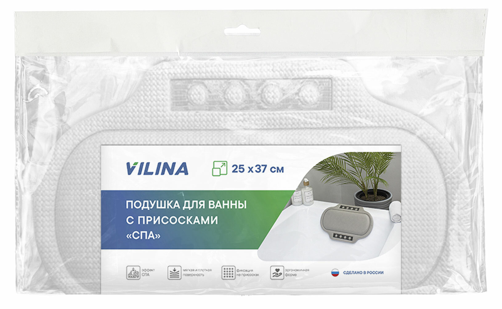 Подушка для ванны Vilina размером 25х37 см - прекрасный элемент ванной комнаты, который обеспечит вашей коже максимальный комфорт и удовольствие во время принятия ванны.