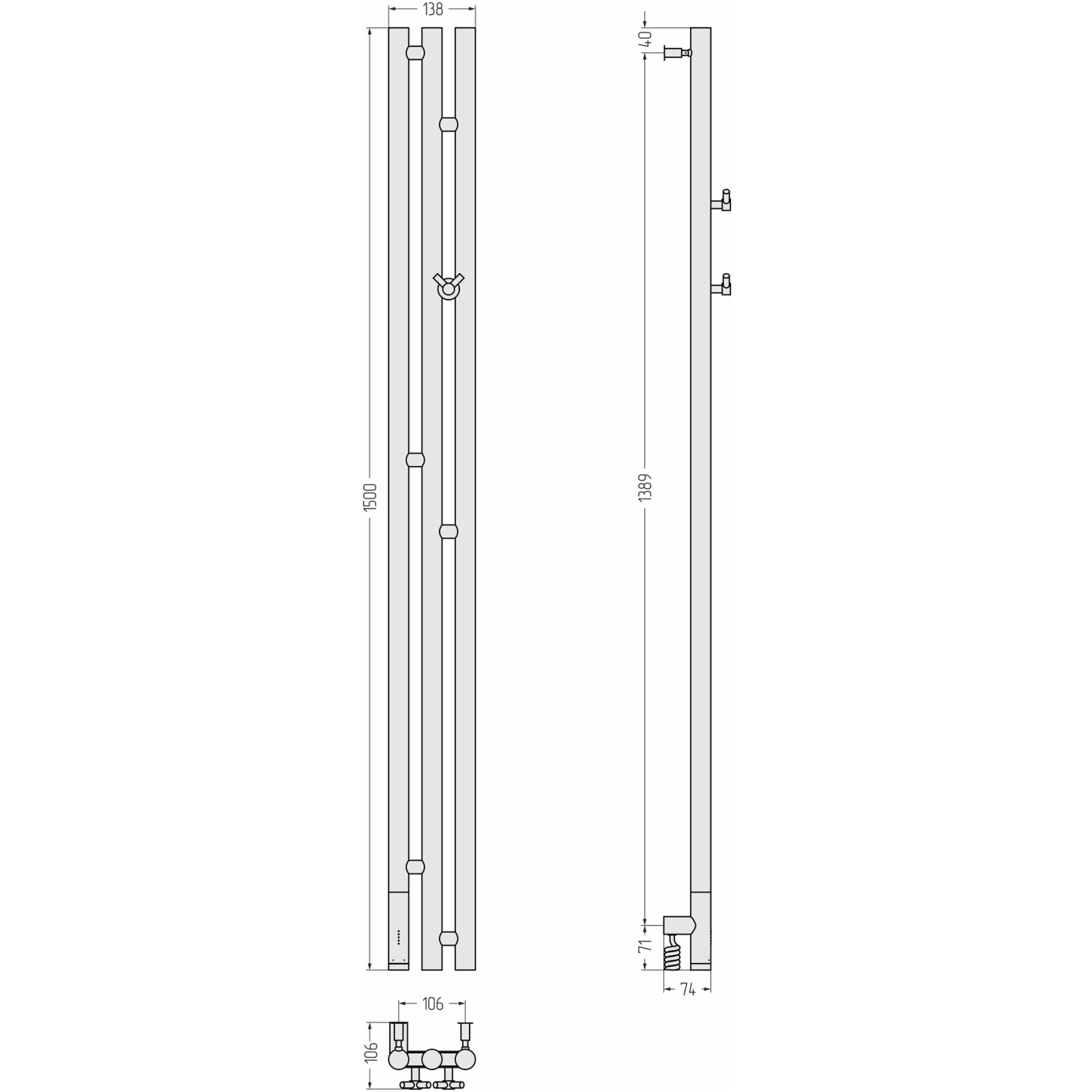 Полотенцесушитель электрический Сунержа Терция 3.0 150х10,6 L темный титан муар 1. Блок управления с кабелем¶ Интегрированное в корпус скрытое подключение¶ Вешалка «Виктория»¶ Телескопические кронштейны¶ Шестигранный ключ¶ Дюбели и саморезыСмотри также характеристики.