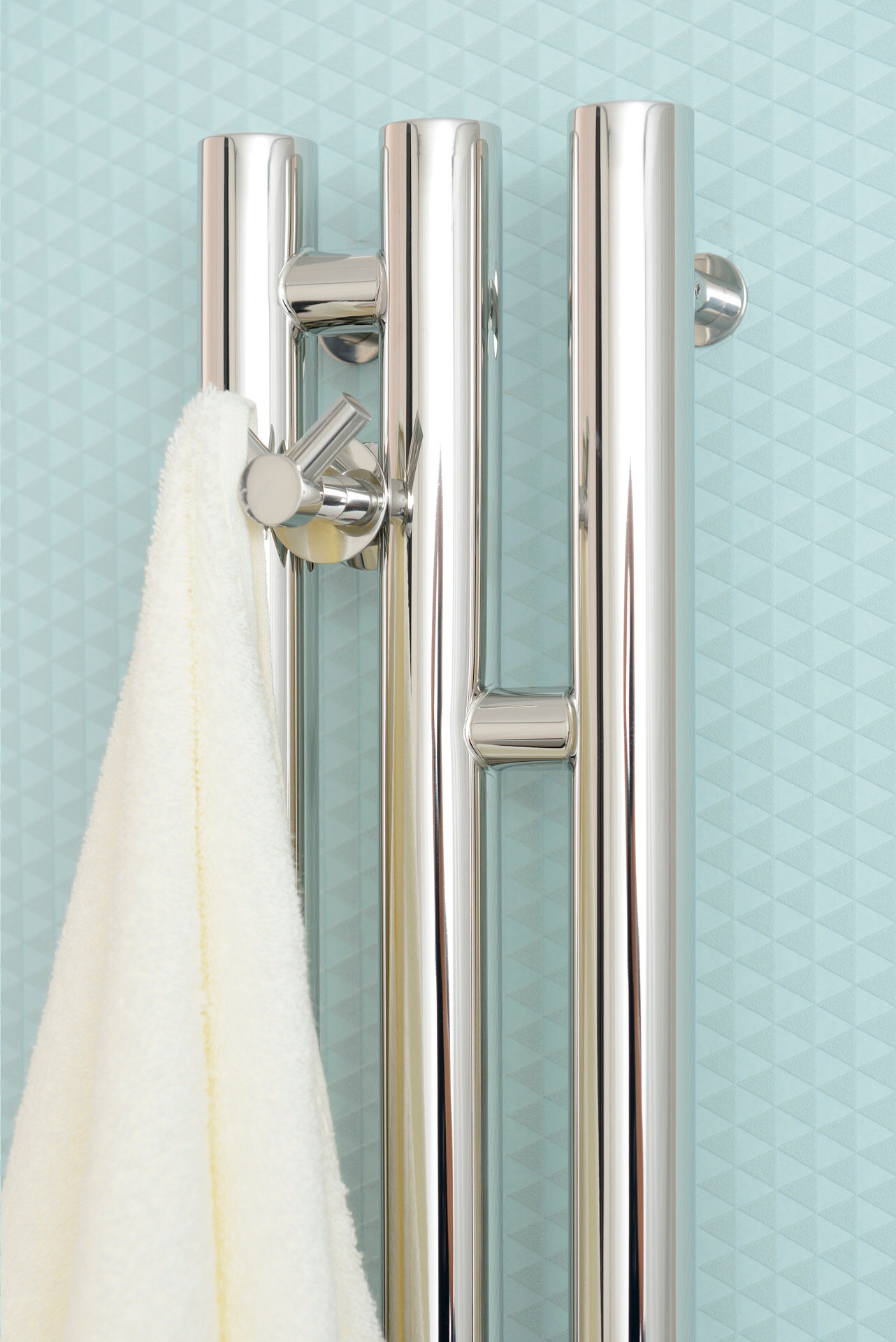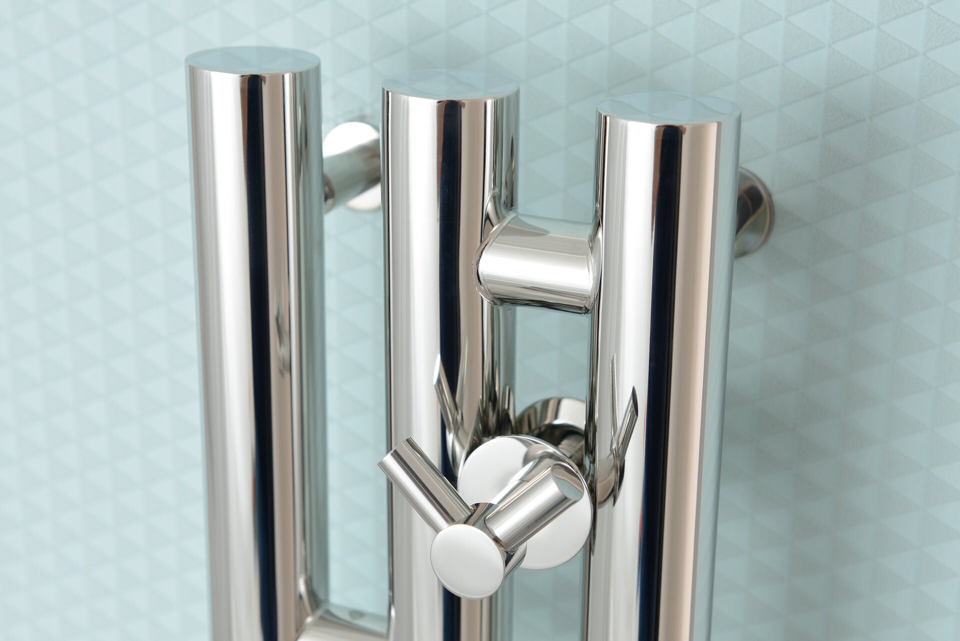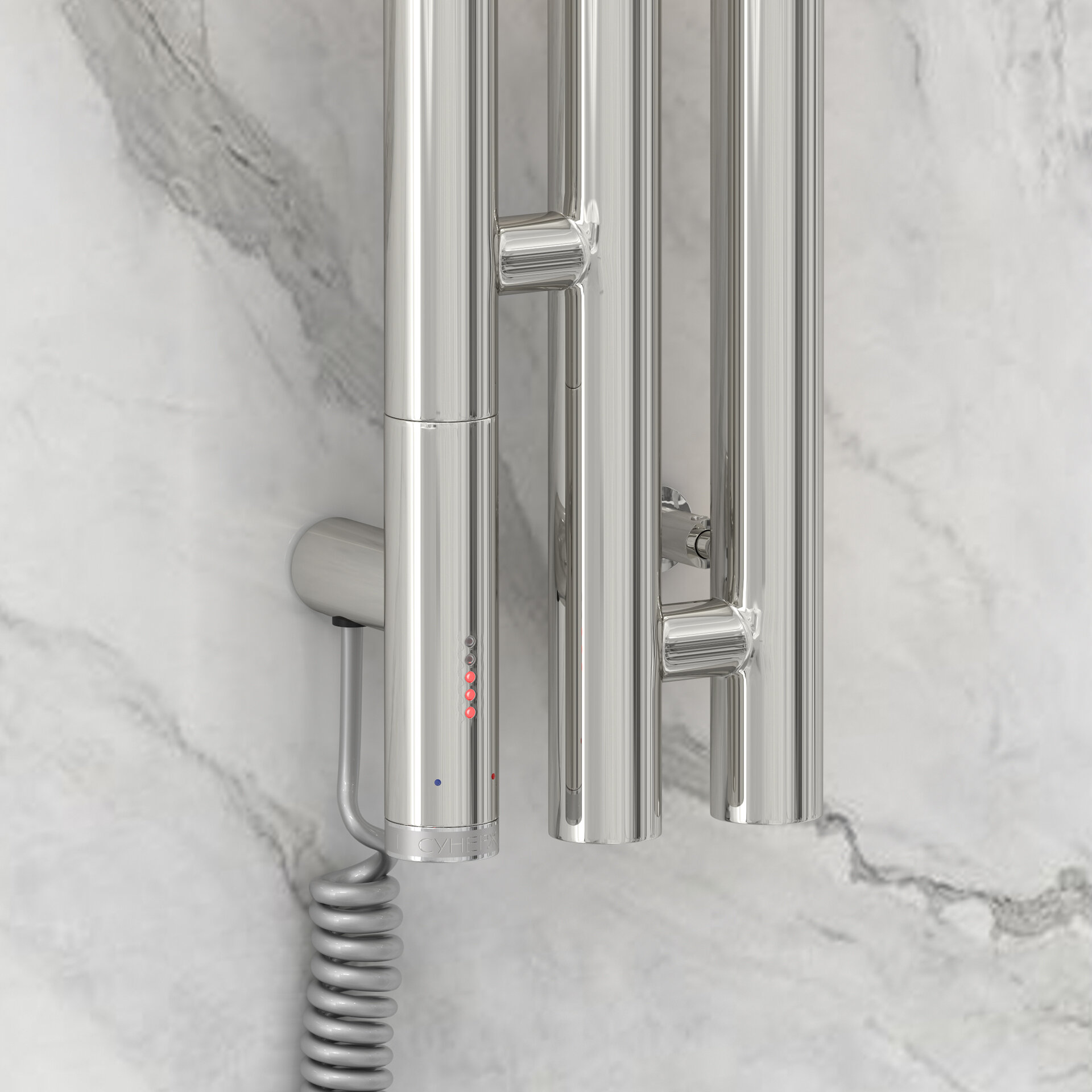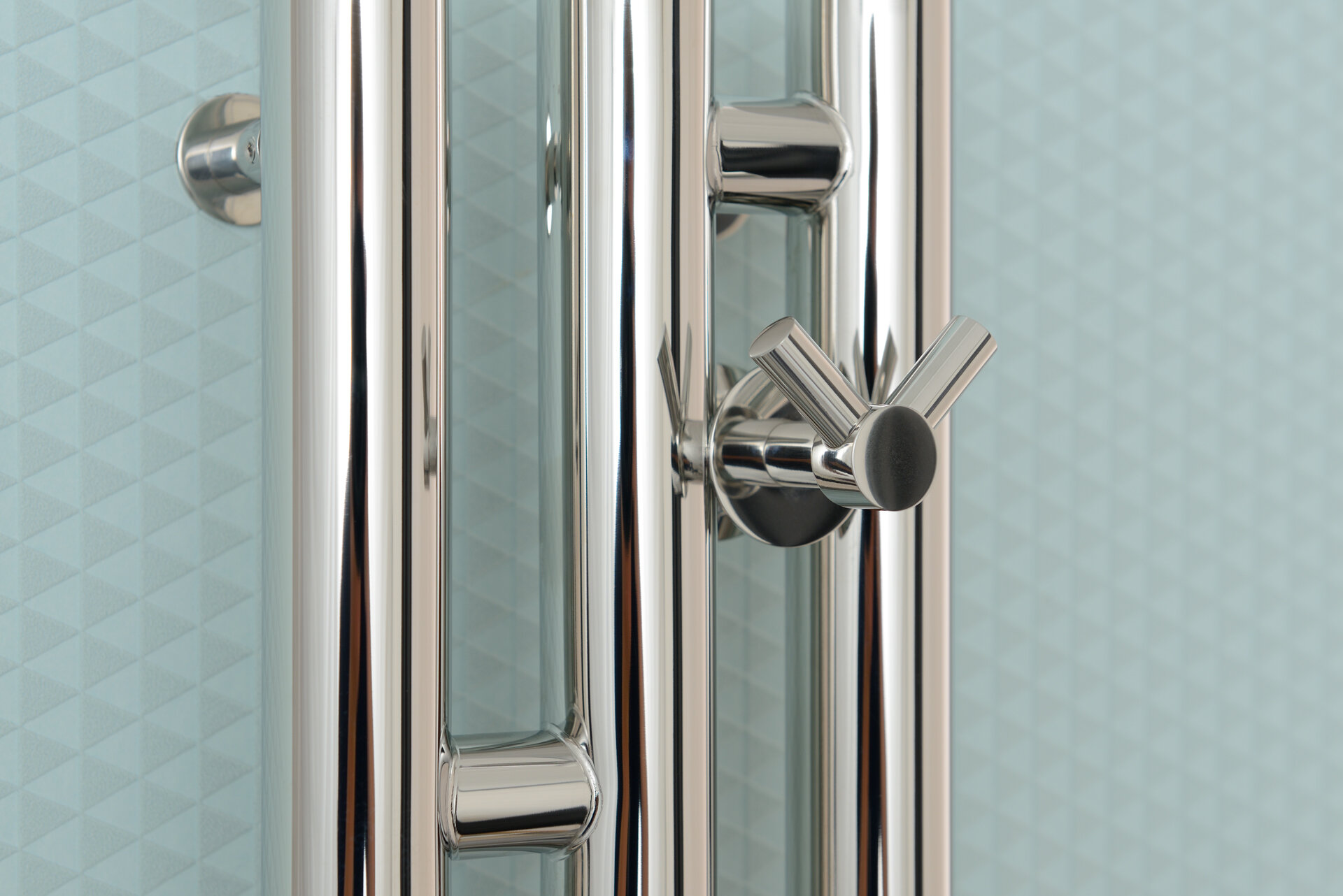 Электрический полотенцесушитель Терция 3.0 представлен в двух вариантах высоты: 1200 и 1500 миллиметров. Модель станет украшением любой ванной комнаты, независимо от стиля и размера. В комплект поставки входит всё, необходимое для установки и монтажа полотенцесушителя, включая комплект для скрытого монтажа и удобные двойные вешалки, позволяющие повесить сразу несколько полотенец.Модель оборудована надёжным российским ТЭНом с двухлетней гарантией. Полотенцесушитель имеет степень защиты IP54 – вся электроника надёжно защищена не только от пыли и повышенной влажности в помещении, но и от попадания брызг воды. Установленный в корпус блок управления позволяет быстро выбрать подходящий уровень нагрева полотенцесушителя, задать время его работы и быстро высушить вещи в режиме «экстра сушка».