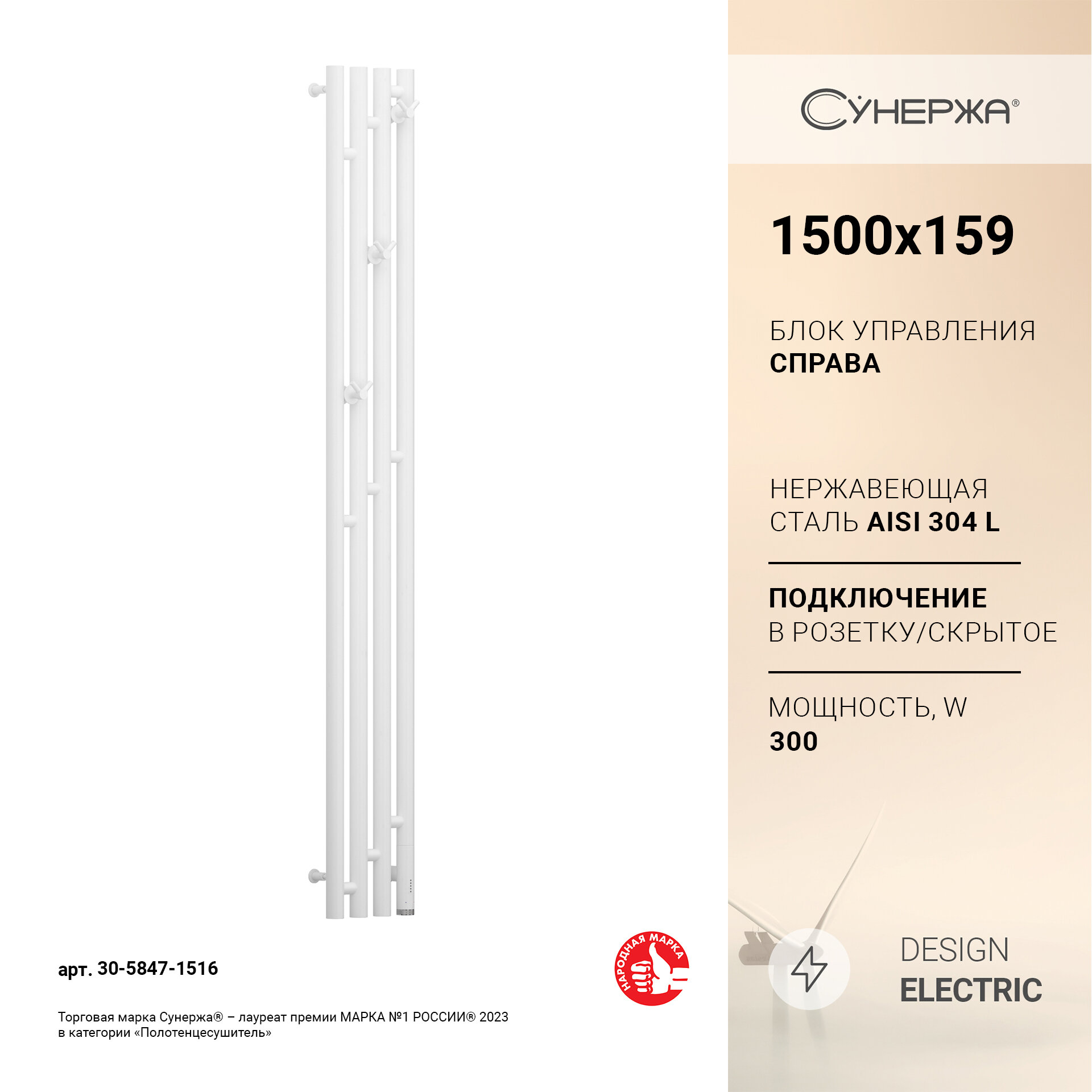 Полотенцесушитель электрический Сунержа Кантата 3.0 150х159 R матовый белый Кантата 3.0 30-5847-1516