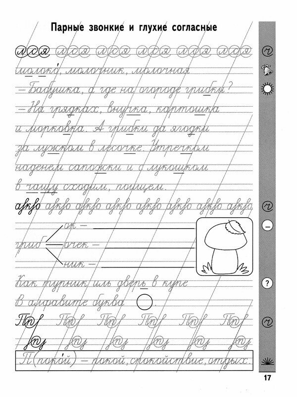 Данное издание не просто прописи, а тренажёр по чистописанию для детей, уже умеющих писать. Пособие предназначено для комплексного развития многих практических навыков и умений ученика начальной школы и соответствует ФГОС. Цель пособия - помочь ученику развить орфографическую зоркость, способствовать выработке красивого почерка, расширить кругозор и развить мыслительные и логические навыки. Особенностью пособия являются загадки про буквы и исторические сведения о названиях и значениях букв русской азбуки. Автор тренажёра надеется, что пособие будет полезно для самостоятельной работы как во внеурочное время в начальных классах, так и дома.