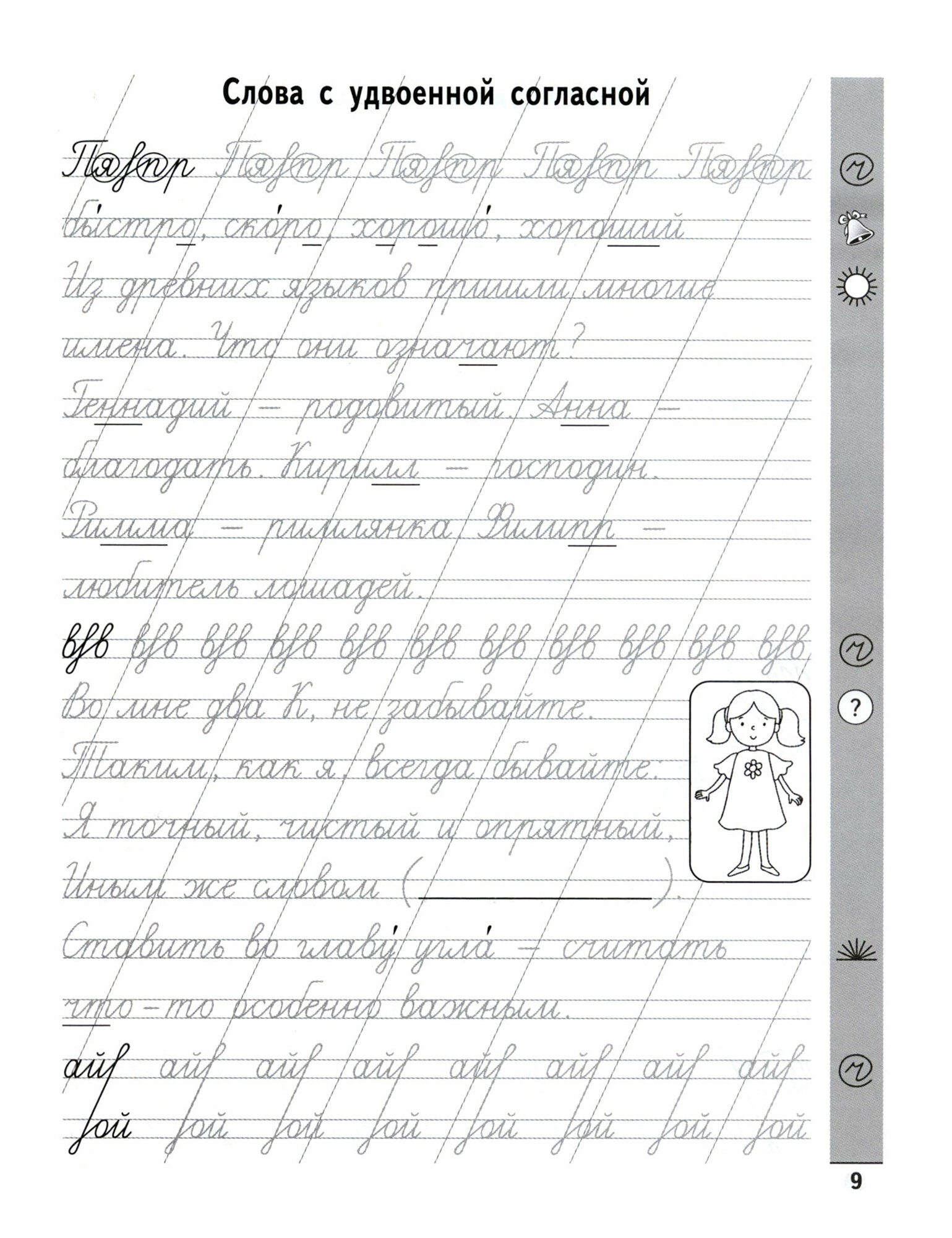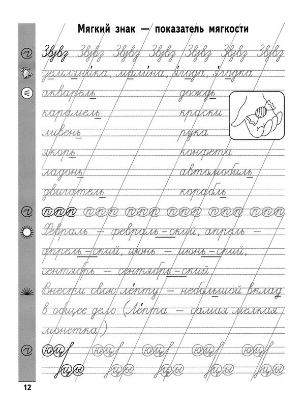 Данное издание не просто прописи, а тренажёр по чистописанию для детей, уже умеющих писать. Пособие предназначено для комплексного развития многих практических навыков и умений ученика начальной школы и соответствует ФГОС. Цель пособия - помочь ученику развить орфографическую зоркость, способствовать выработке красивого почерка, расширить кругозор и развить мыслительные и логические навыки. Особенностью пособия являются библейские фразеологизмы и их значения. Автор тренажёра надеется, что пособие будет полезно для самостоятельной работы как во внеурочное время в начальных классах, так и дома.