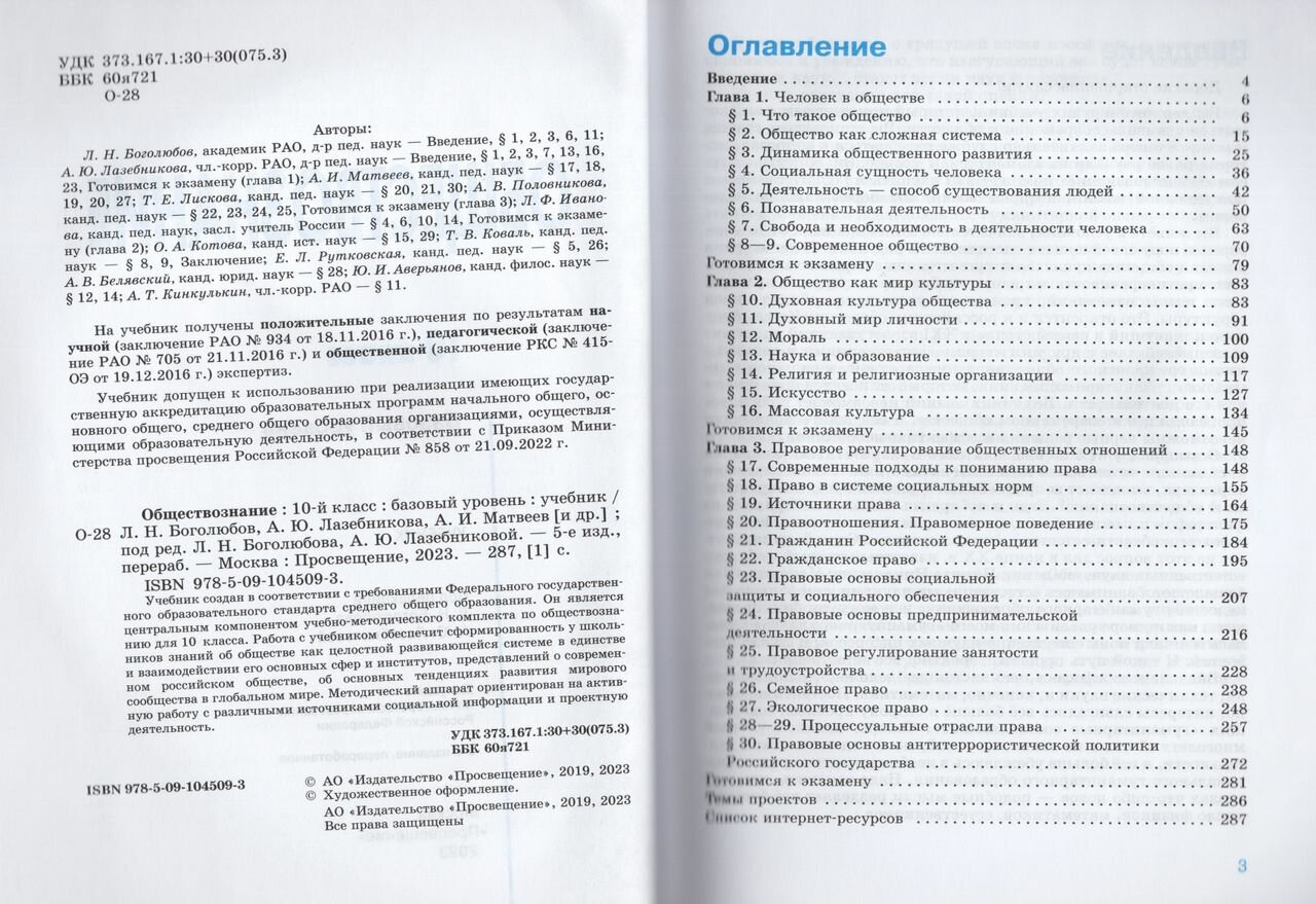 Обществознание. 10 класс. Учебник. Базовый уровень (Боголюбов Леонид Наумович, Лазебникова Анна Юрьевна, Матвеев Александр Измайлович); Просвещение, 2023