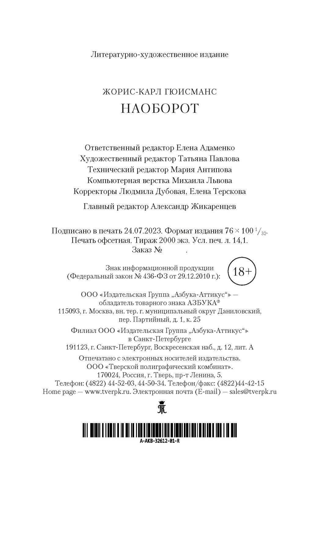 Книга: Наоборот (Жорис Карл Гюисманс); Азбука, 2023