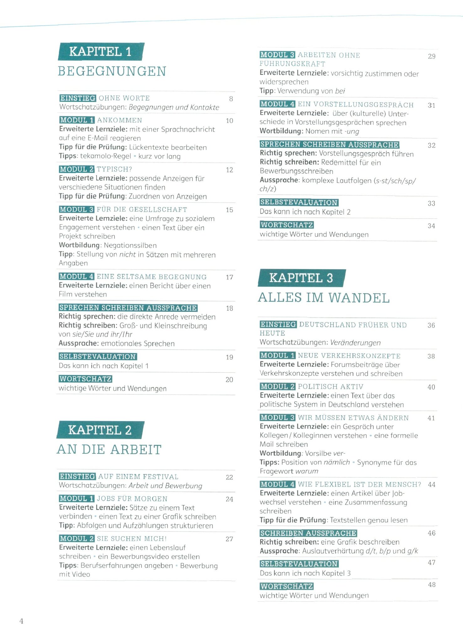 Modularer und linearer Aufbau mit Fokus auf allen vier Fertigkeiten
