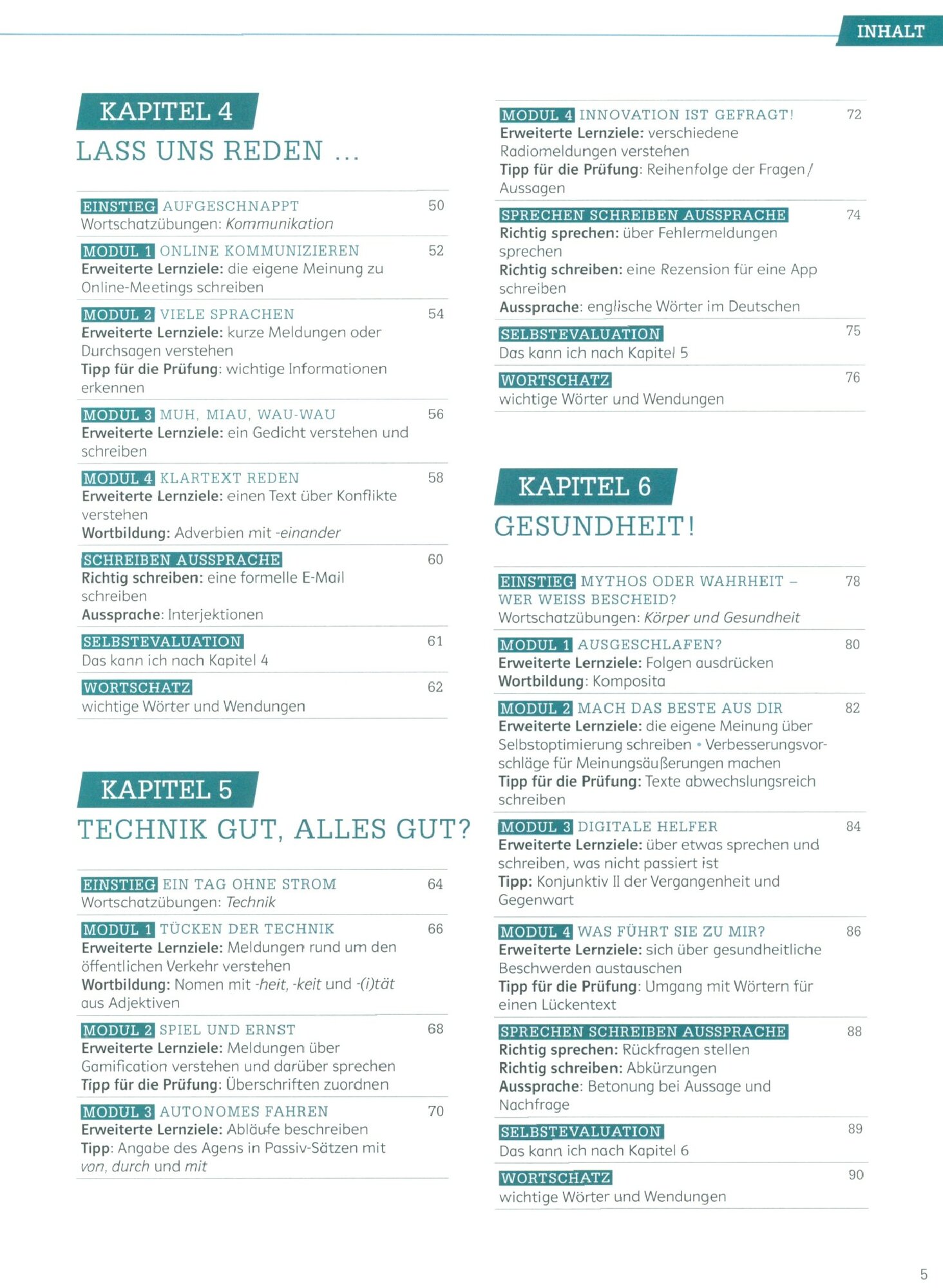 Extraseiten zu Sprech- und Schreibtraining sowie zur Aussprache