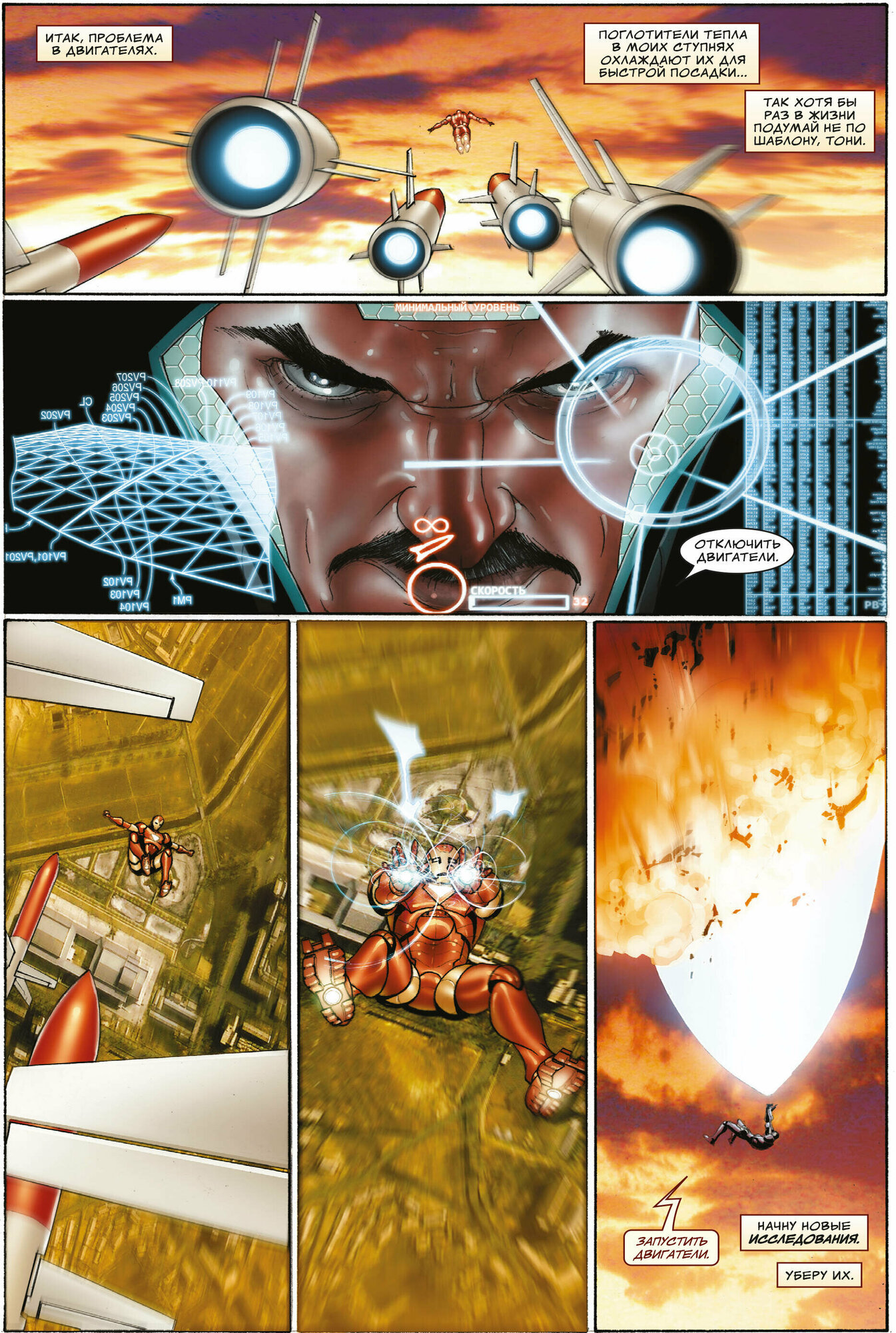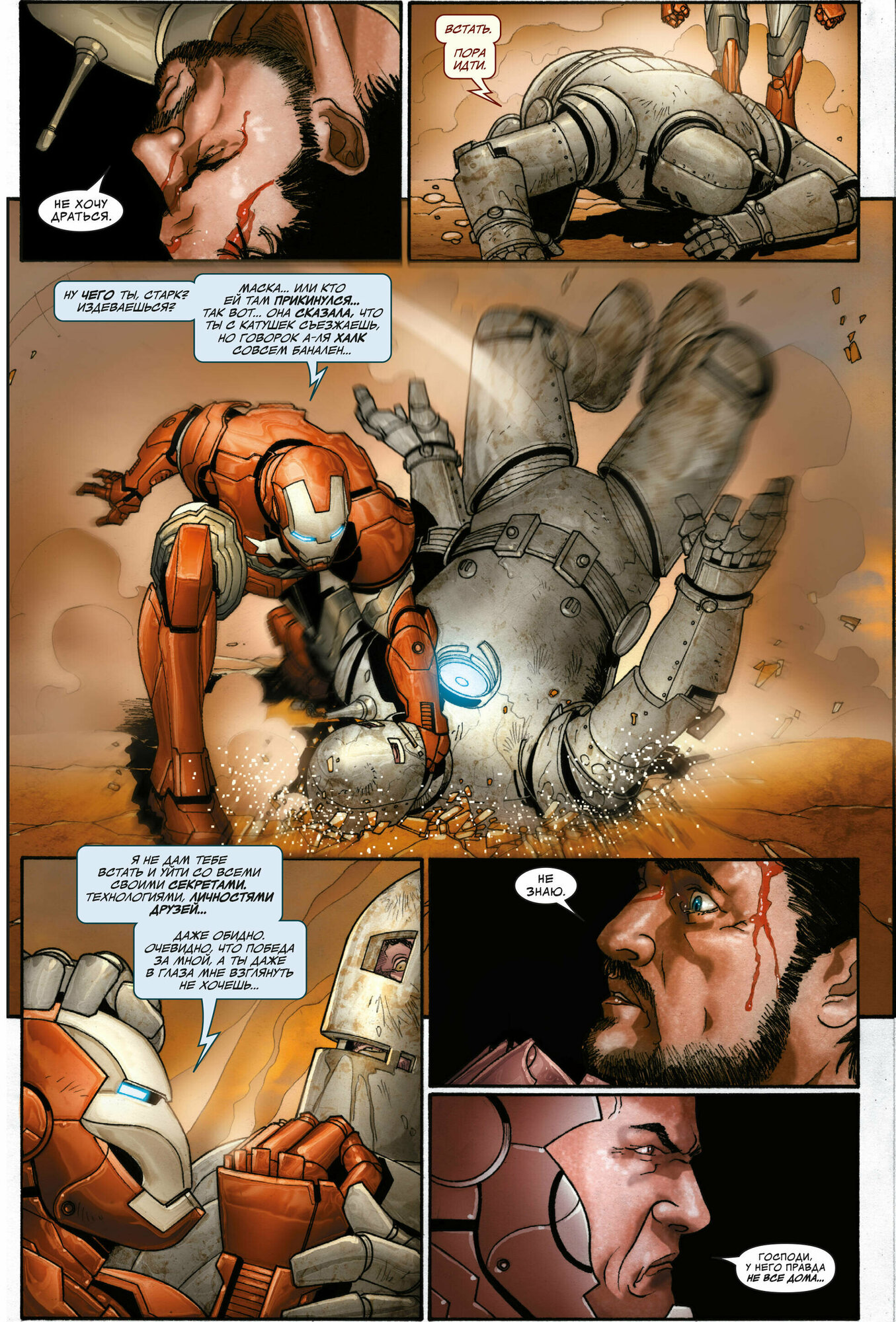 Самый мощный хит о Железном человеке, который нам подарили известные таланты - сценарист Мэтт Фрекшн и художник Сальвадор Ларрока. Действие комикса происходит на протяжении некоторого времени, которое включает управление Старком Защитой, гражданскую войну и охоту на Старка, в целом это 19 выпусков. Но самым главным Достоянием данного комикса, является противостояние Энтони с сыном своего заклятого врага, характер которого прописан до мелочей и порой кажется, что это живой человек, а не персонаж (злодей) комикса. Несмотря на безумное количество экшена и великолепного Чистого рисунка Ларроки, который этот экшен демонстрирует, комикс проявляет некую интеллектуальную структуру. Сама игра в злодея и героя, здесь подаётся совершенно иначе, показывая, что комиксы про защитников Марвел тоже могут быть умными, и даже выдающимися. Рекомендую всем поклонникам ЖЧ и просто фанатам комиксов, эту книгу упускать просто нельзя.