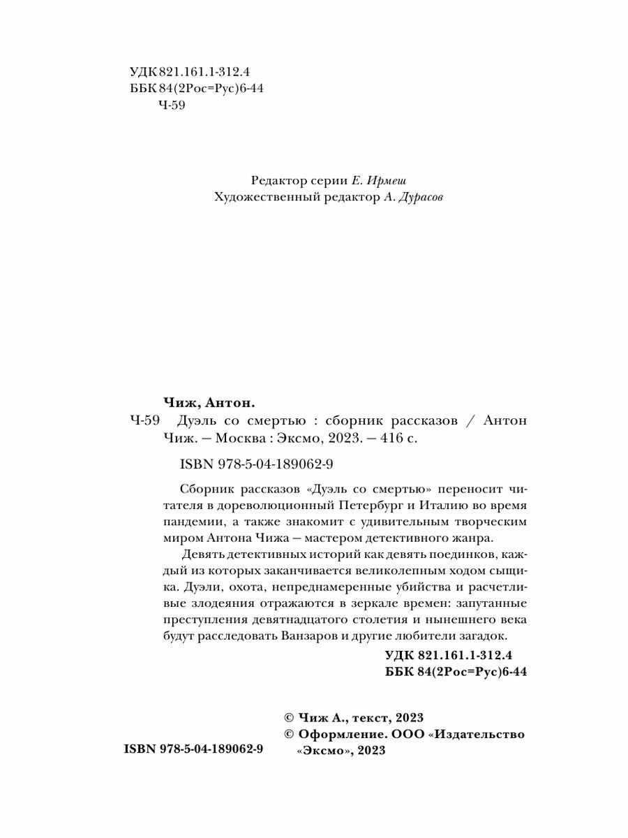 Сборник рассказов перенесет вас в дореволюционный Петербург и Италию во время пандемии, а также познакомят с удивительным творческим миром Антона Чижа - мастером детективного жанра.