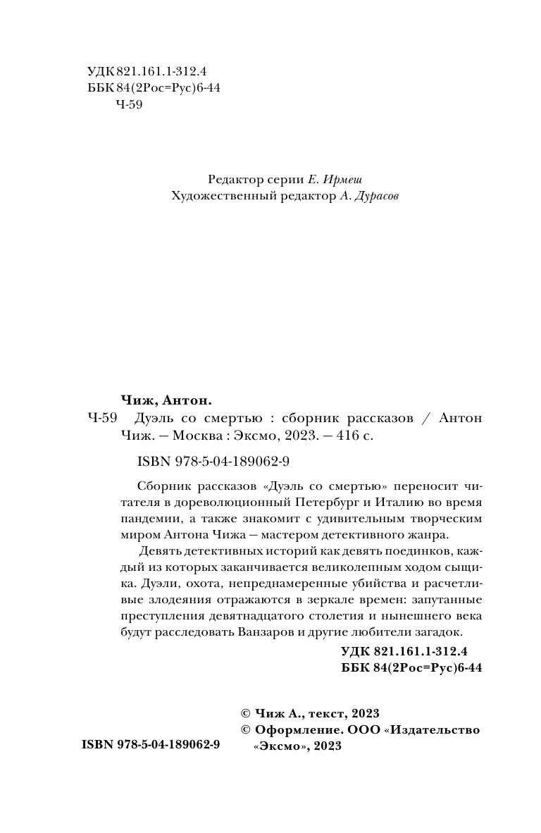 Книга: Дуэль со смертью (Антон Чиж); Эксмо, Редакция 1, 2023