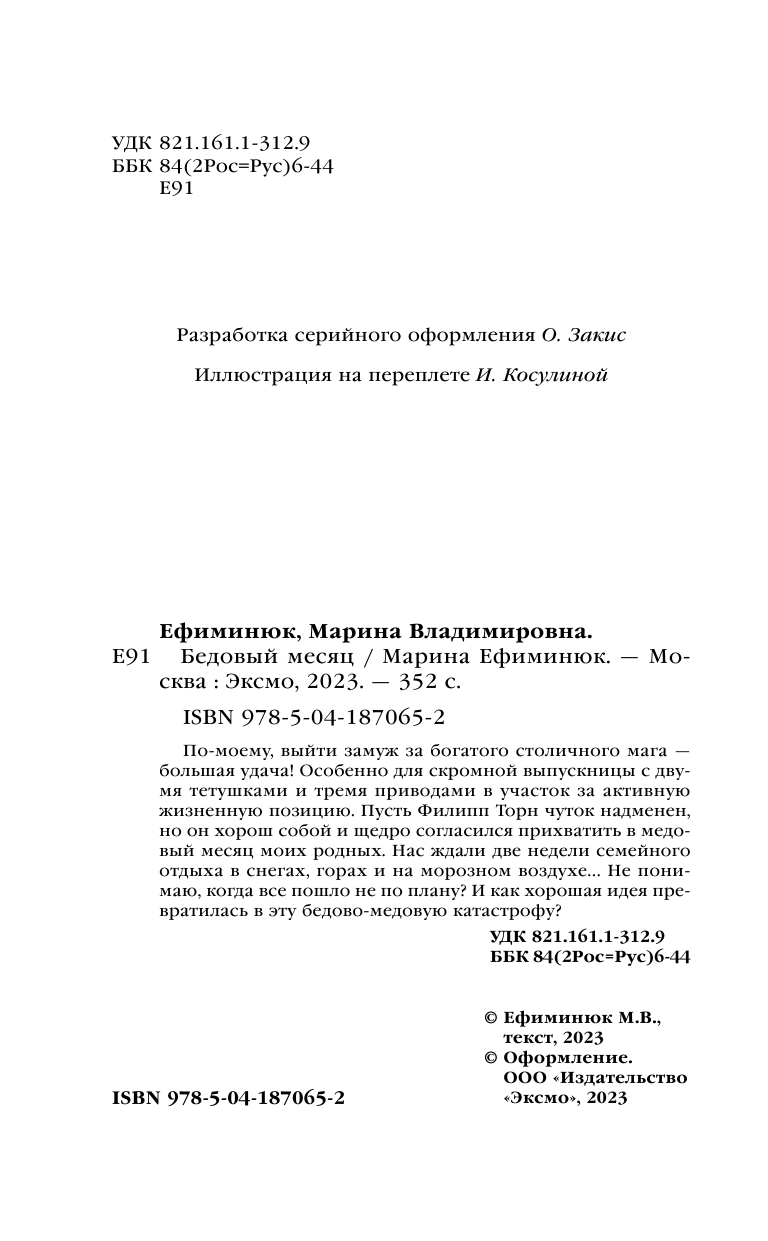 Книга: Бедовый месяц (Марина Ефиминюк); Эксмо, Редакция 1, 2023