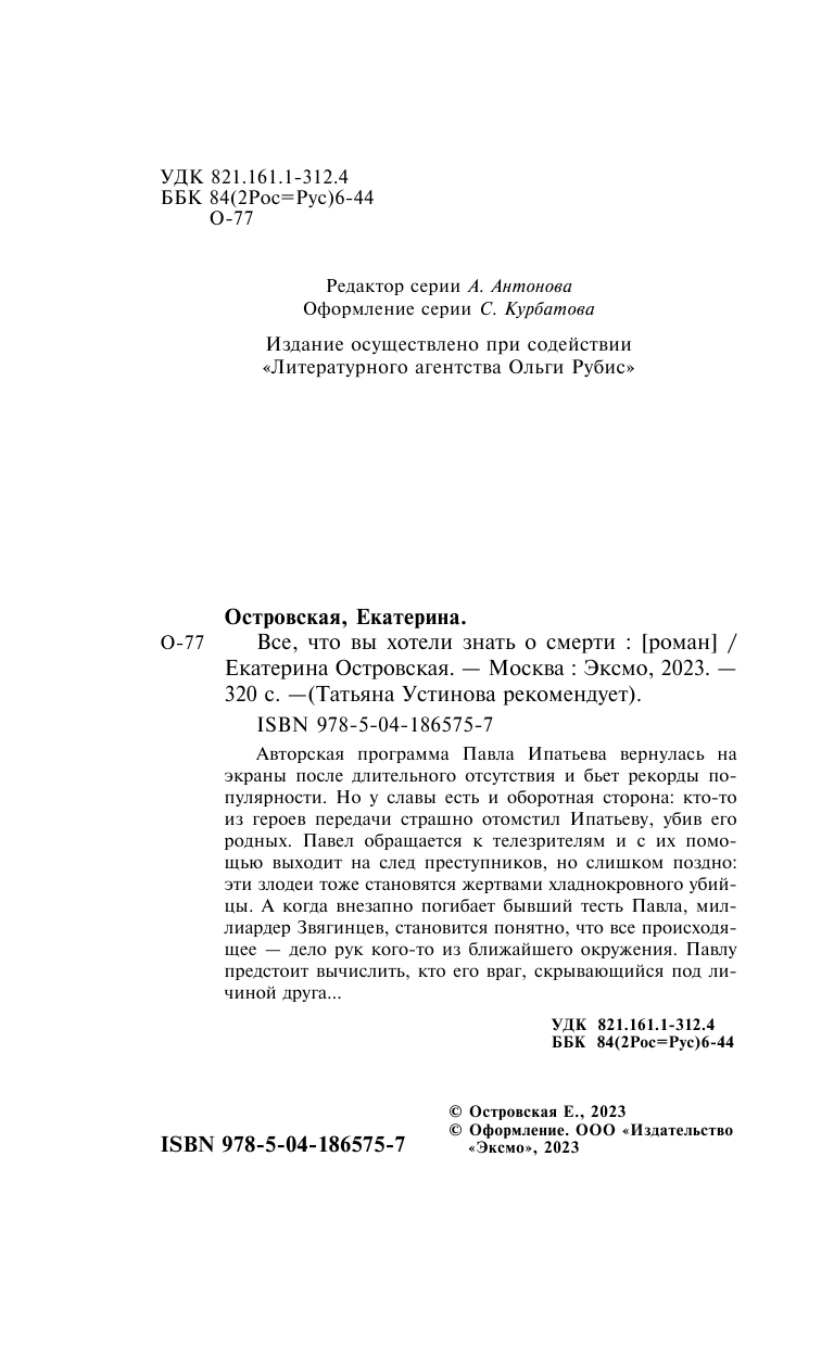 Все что вы хотели знать о смерти (Островская Екатерина Николаевна); ООО "Издательство "Эксмо", 2023