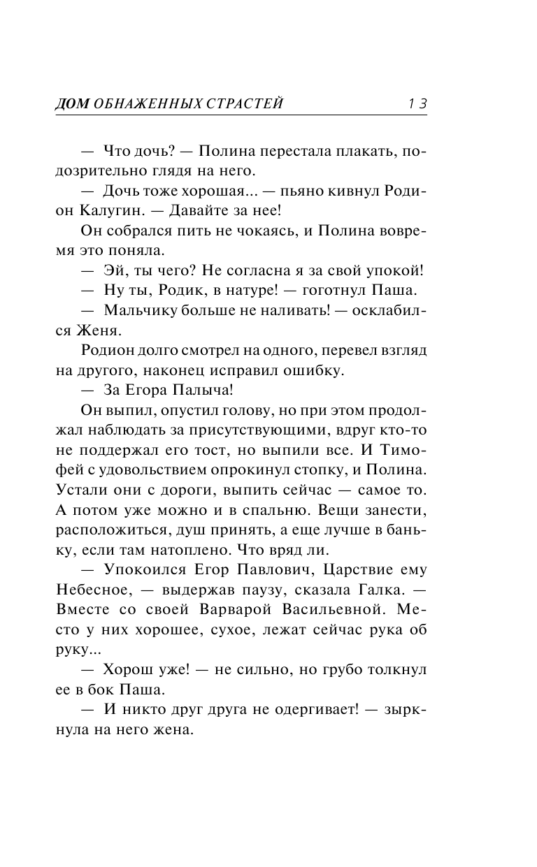На похороны Егора Дуванова в отдаленную деревню съехались близкие и знакомые. Поминали как положено: с речами, со слезами и… с взаимными претензиями — не все собравшиеся ладили друг с другом, были тут и любовные интриги, и свои «скелеты в шкафу». Как назло, на несколько дней зарядил ливень, река вышла из берегов и затопила мост. Гостям пришлось задержаться. А ночью случилось ЧП. При невыясненных обстоятельствах погиб один из гостей. Полиция сигнал приняла, но в эту глухомань добираться не спешила. К ужасу собравшихся, следующая ночь добавила жертв. Гостей охватила настоящая паника. Откуда им было знать, что покойный Дуванов еще при жизни превратил свой дом в самую настоящую «пороховую бочку»…
