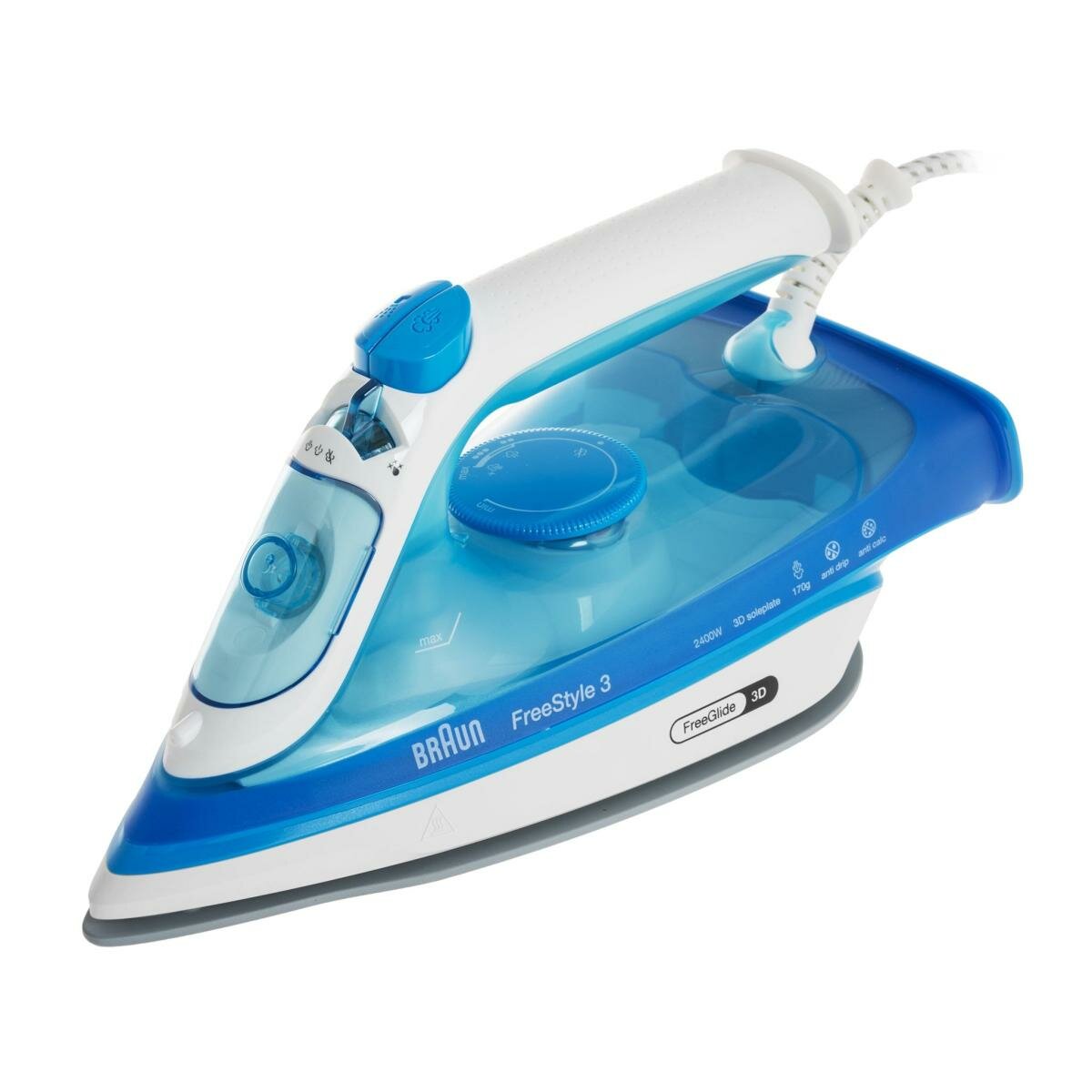 Утюг Braun FreeStyle 3 быстрый, эффективный и супер легкий в управлении. Он оснащен первой в мире технологией FreeGlide3D, которая позволяет скользить по любому препятствию. Он также оснащен открытой рукояткой FreeStyle Braun. Эта эргономичная ручка обеспечивает максимальную свободу движений и удобное глажение. SuperCeramic позволяет быстро достичь отличных результатов с меньшими усилиями.
