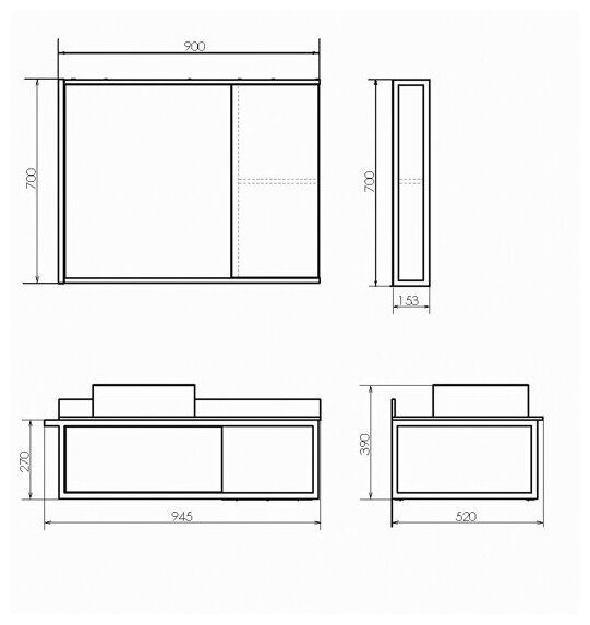 - Размеры (ШхВхГ): 700x800x175 мм.