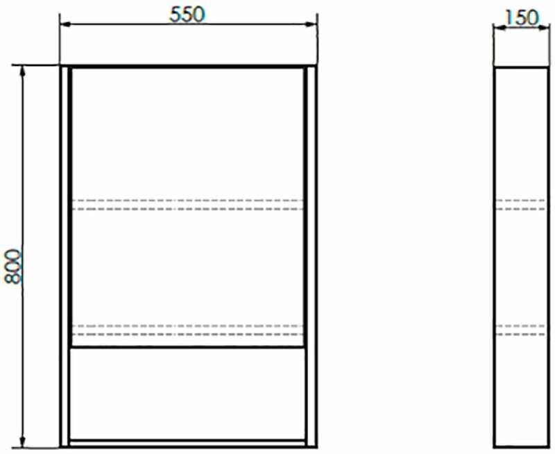 - Размеры (ШхВхГ): 700x800x155 мм.