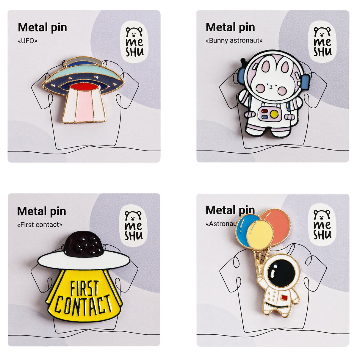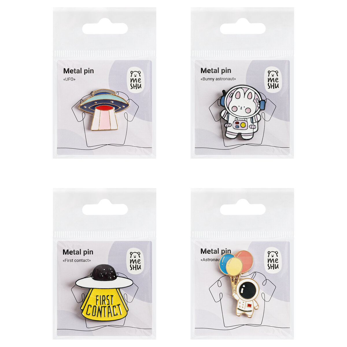 Набор металлических значков MESHU "First contact" эмаль 4 шт (MS_53680)