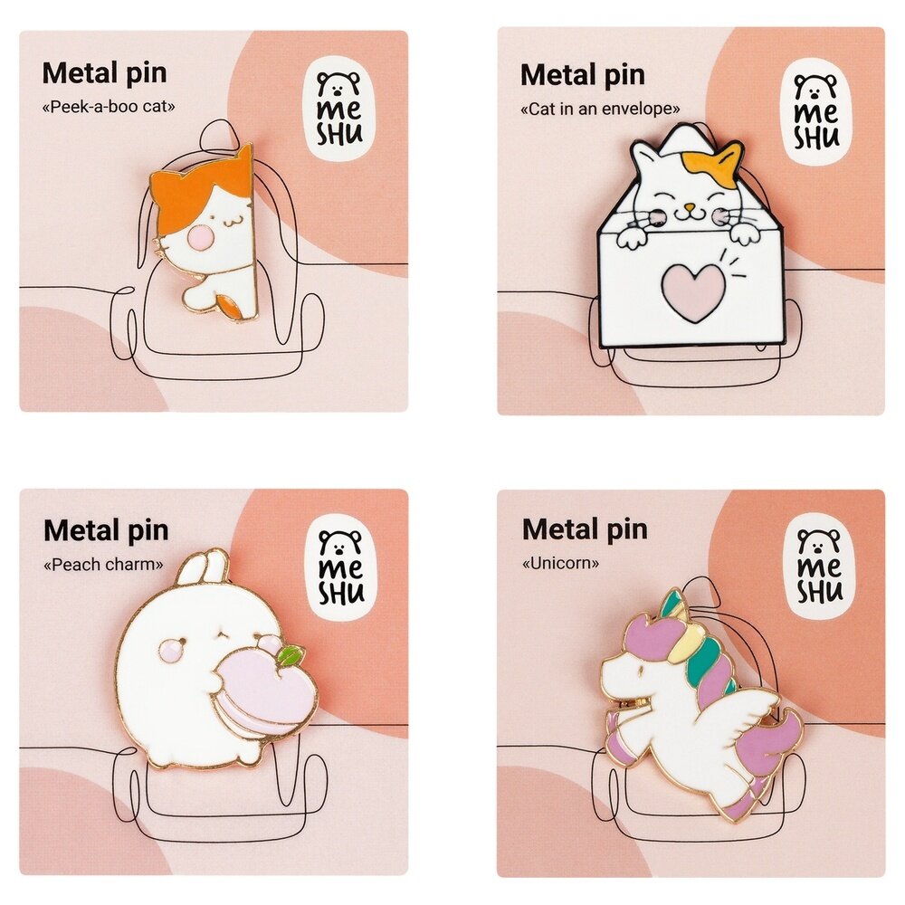 Набор металлических значков от MESHU – оригинальный и модный аксессуар, который преобразит любую вещь. В наборе 4 значка. Застёжка-бабочка позволяет значку надёжно держаться. Эти забавные значки созданы специально, чтобы поднимать настроение своему обладателю.