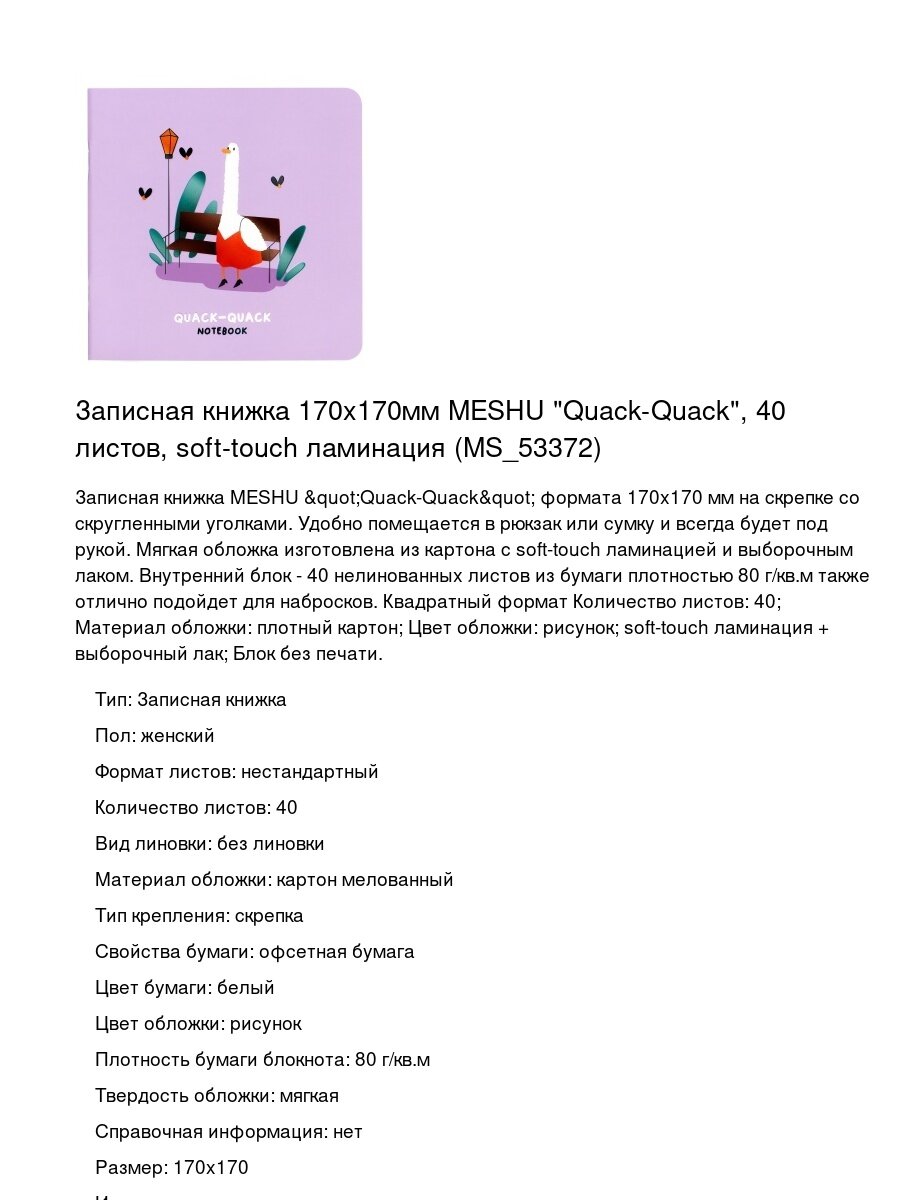 Сервис сравнения цен СкидкаГИД предлагает сравнить цены на товар «Записная книжка MESHU "Quack-Quack" 170*170 мм 40 л soft-touch ламинация без линовки (MS_53372)»