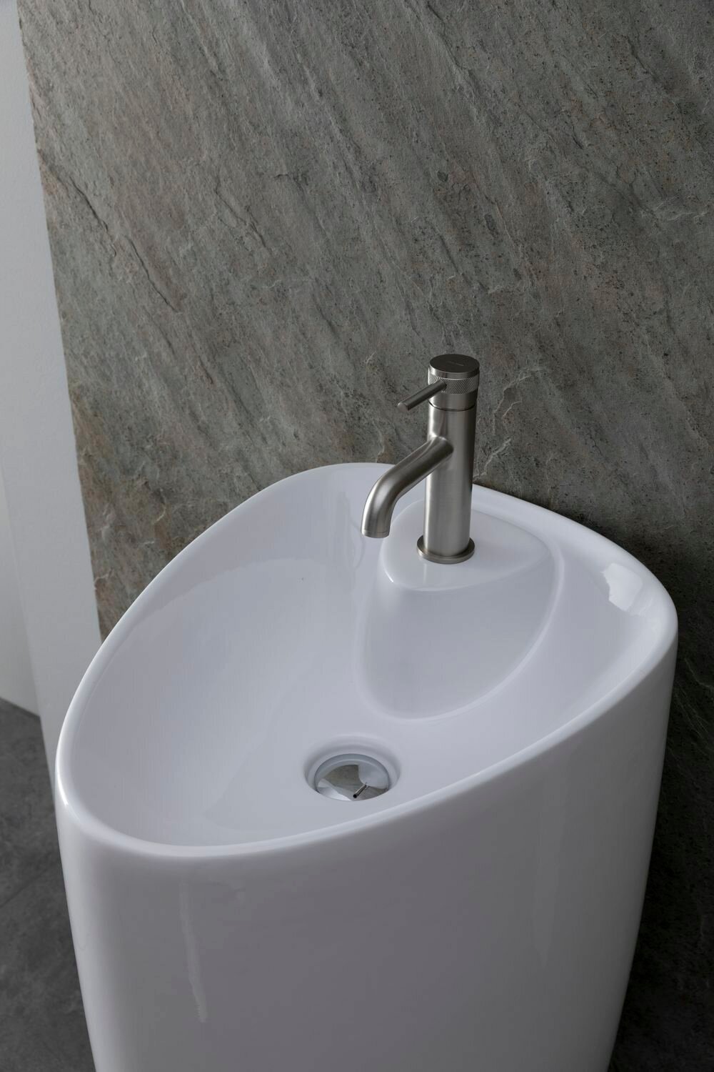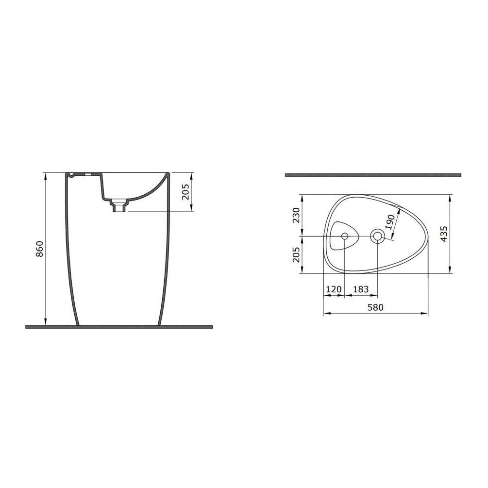 Напольная раковина раковина выполнена в современном стиле. Высота: 86 см. Ориентация: универсальная. Намеченных отверстий под смеситель нет. Материал: керамика. Страна: Германия. Гарантия: 25 лет.