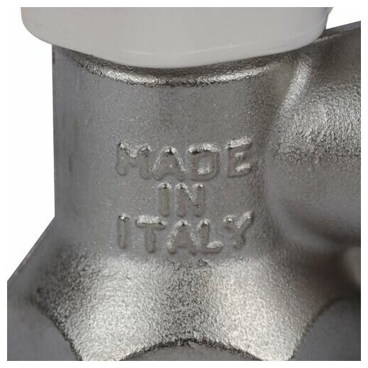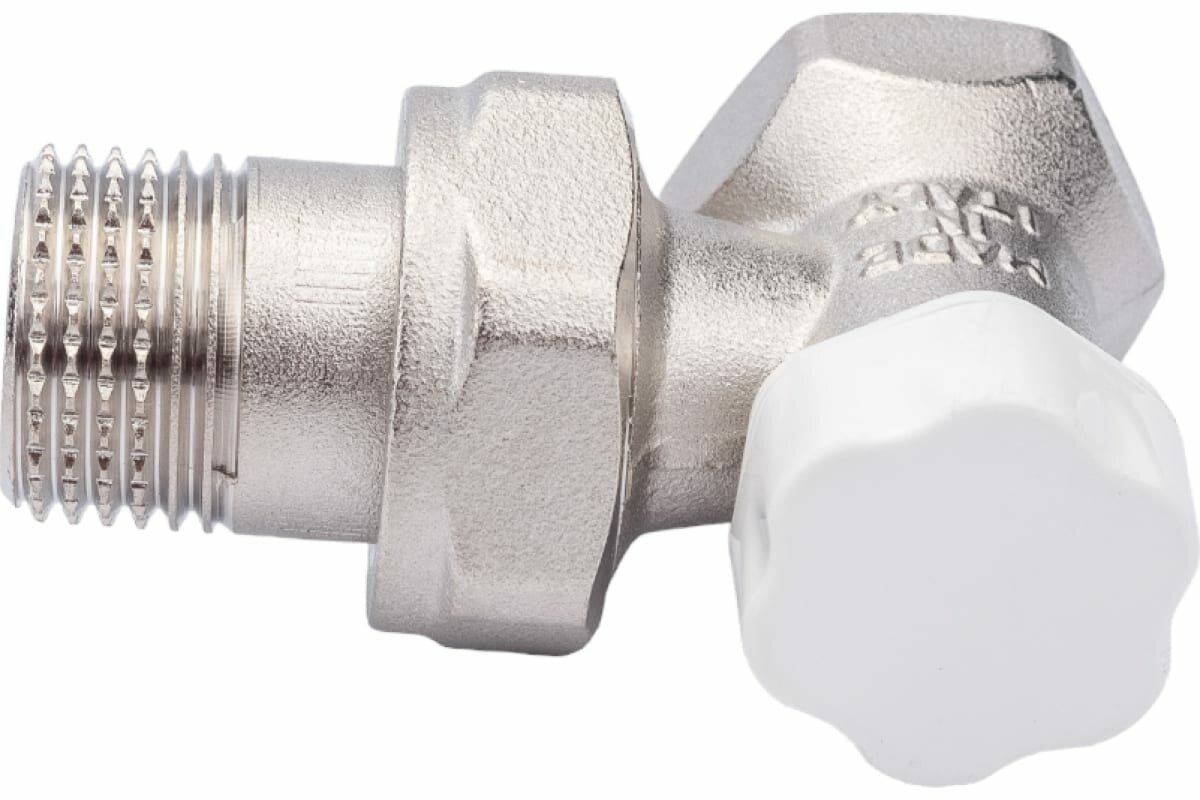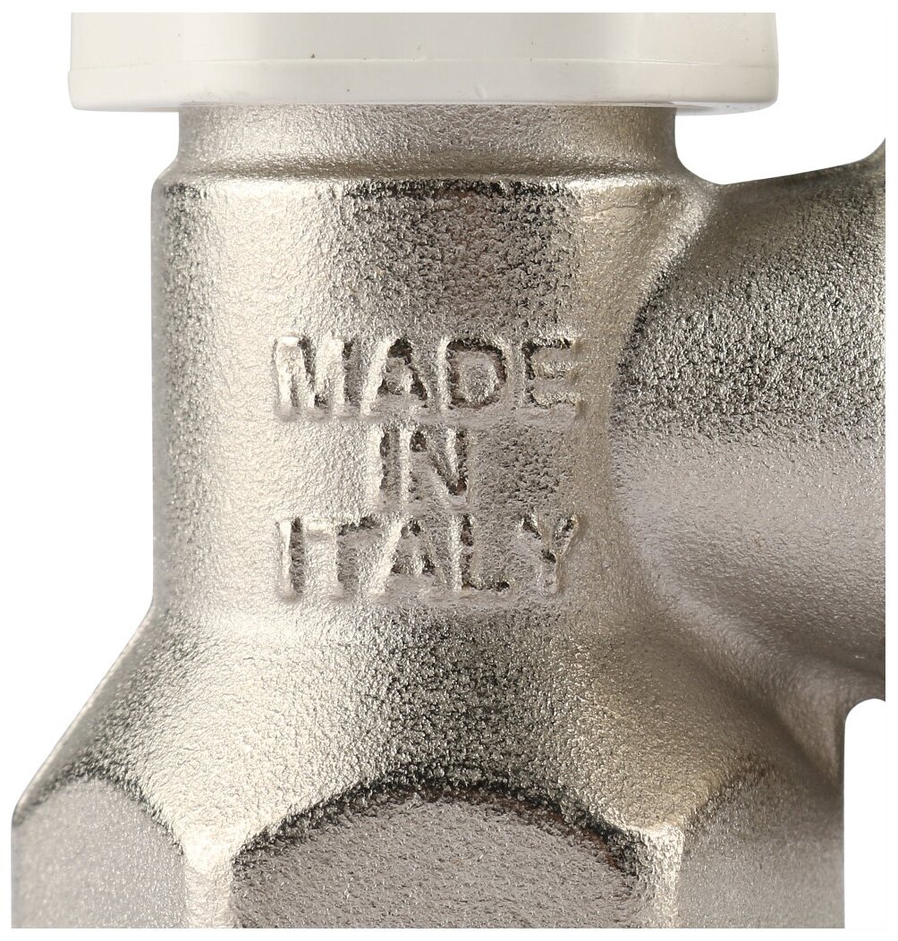 **Клапан радиаторный угловой нижний** используется для регулировки подачи теплоносителя в радиатор отопления. Присоединение осуществляется с помощью резьбового соединения размером 1/2". Сделано в Италии. Гарантия производителя — 2 года.