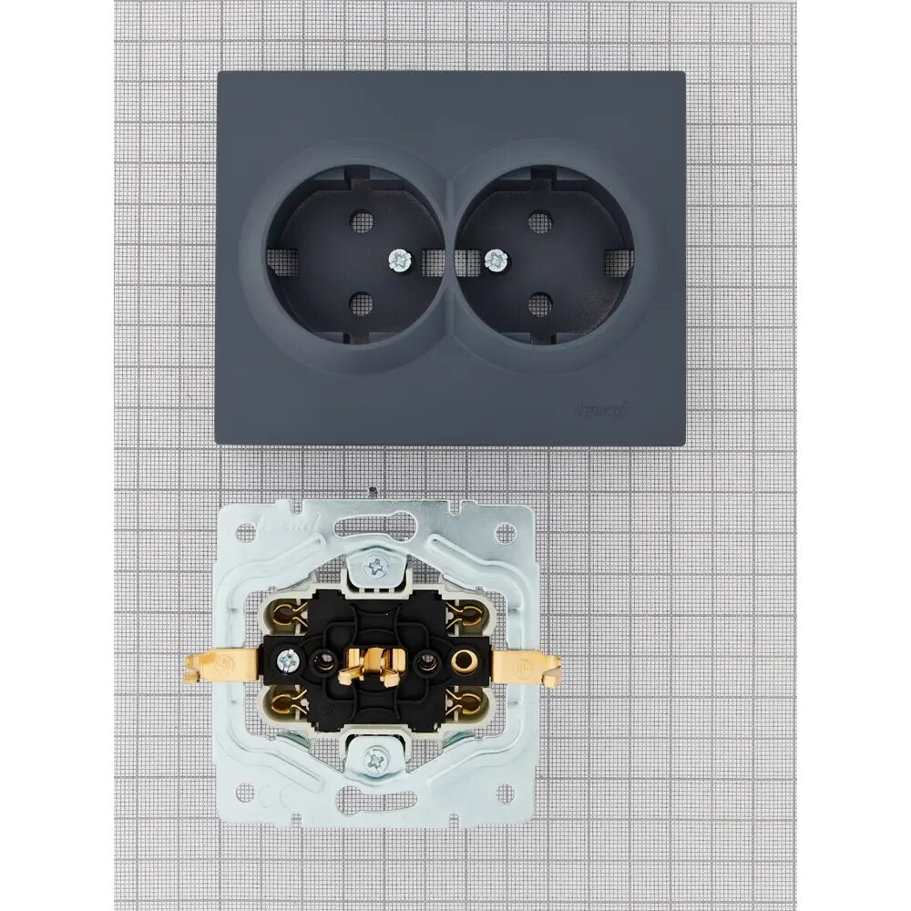 Розетка двойная встраиваемая Lezard Vesna 742-3400-127B с заземлением цвет графит