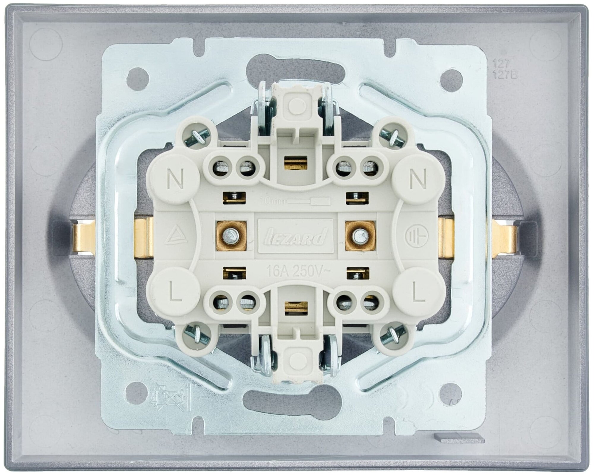 **Розетка Lezard Vesna 742-3400-127B** - модель встраиваемого типа, с заземлением. Предназначена для установки в помещениях жилого, общественного, административного назначения. Корпус изготовлен из прочного и устойчивого к деформации, разрушению в процессе эксплуатации ABS-пластика.