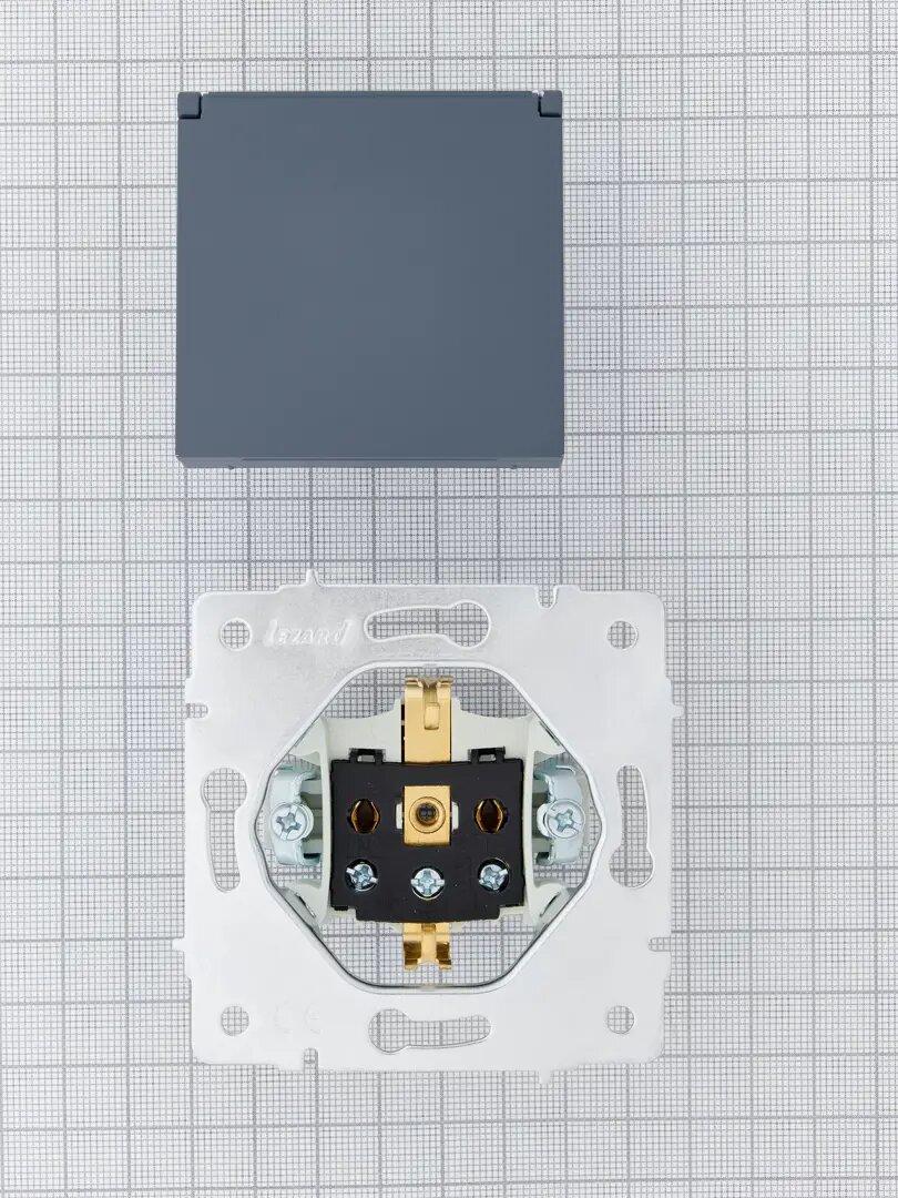 Розетка встраиваемая Lezard Vesna 742-3488-123B с заземлением с крышкой цвет графит