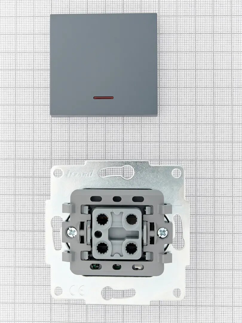 **Выключатель Lezard Vesna 742-3488-111** - модель накладного типа, изготовленная из ABS-пластика, выдерживающего температуру до 600°С. Защелки и внутренние элементы изготовлены из негорючего поликарбоната, выдерживают до 850°С нагрева.