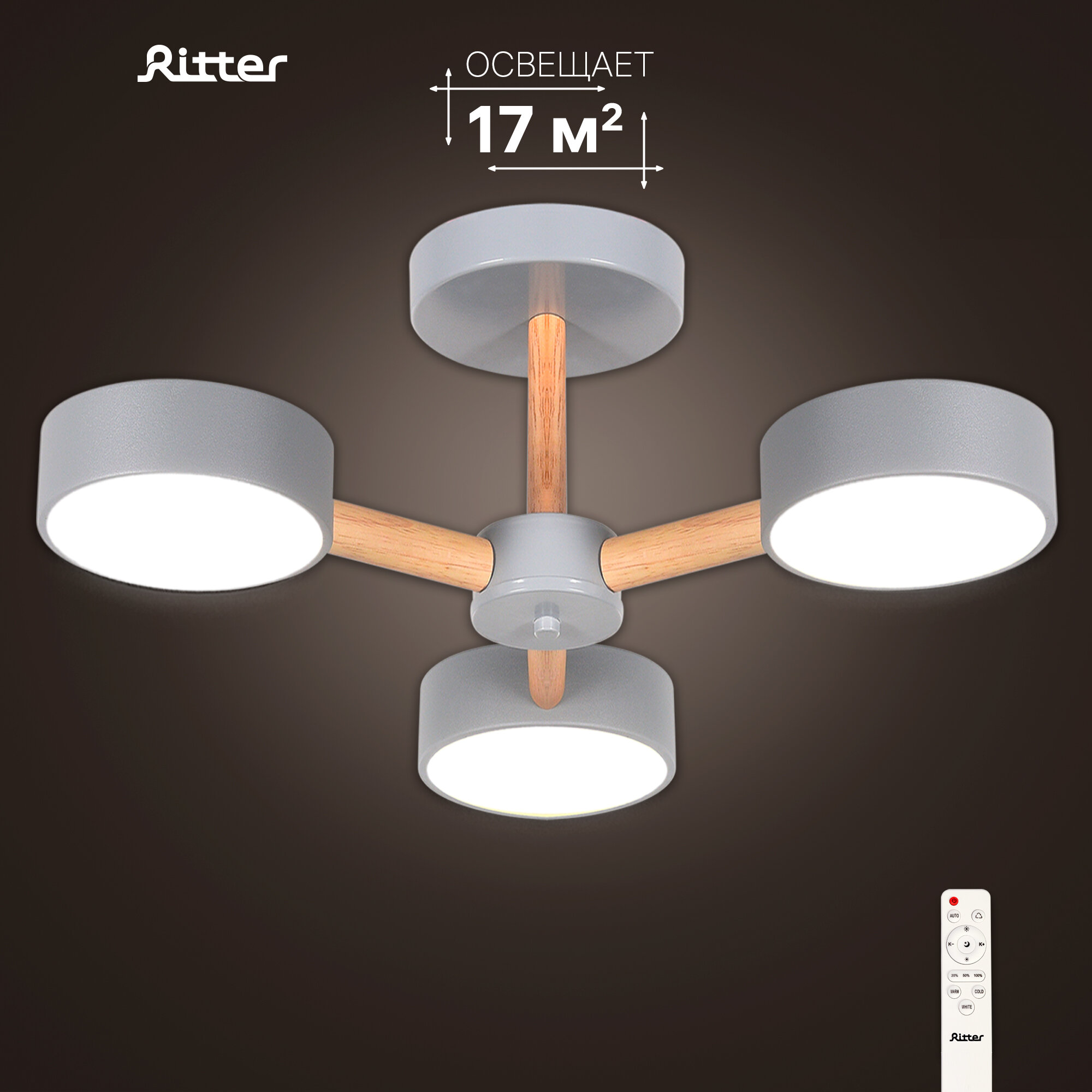 Люстра светодиодная «Scandia» 515900 с пультом управления 17 м² регулируемый белый свет цвет серый RITTER