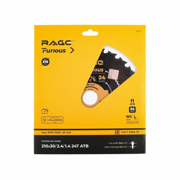 Сервис сравнения цен СкидкаГИД предлагает сравнить цены на товар «Диск пильный по дереву Rage Furious 24Т 210x30x1.4 мм (210/24)»