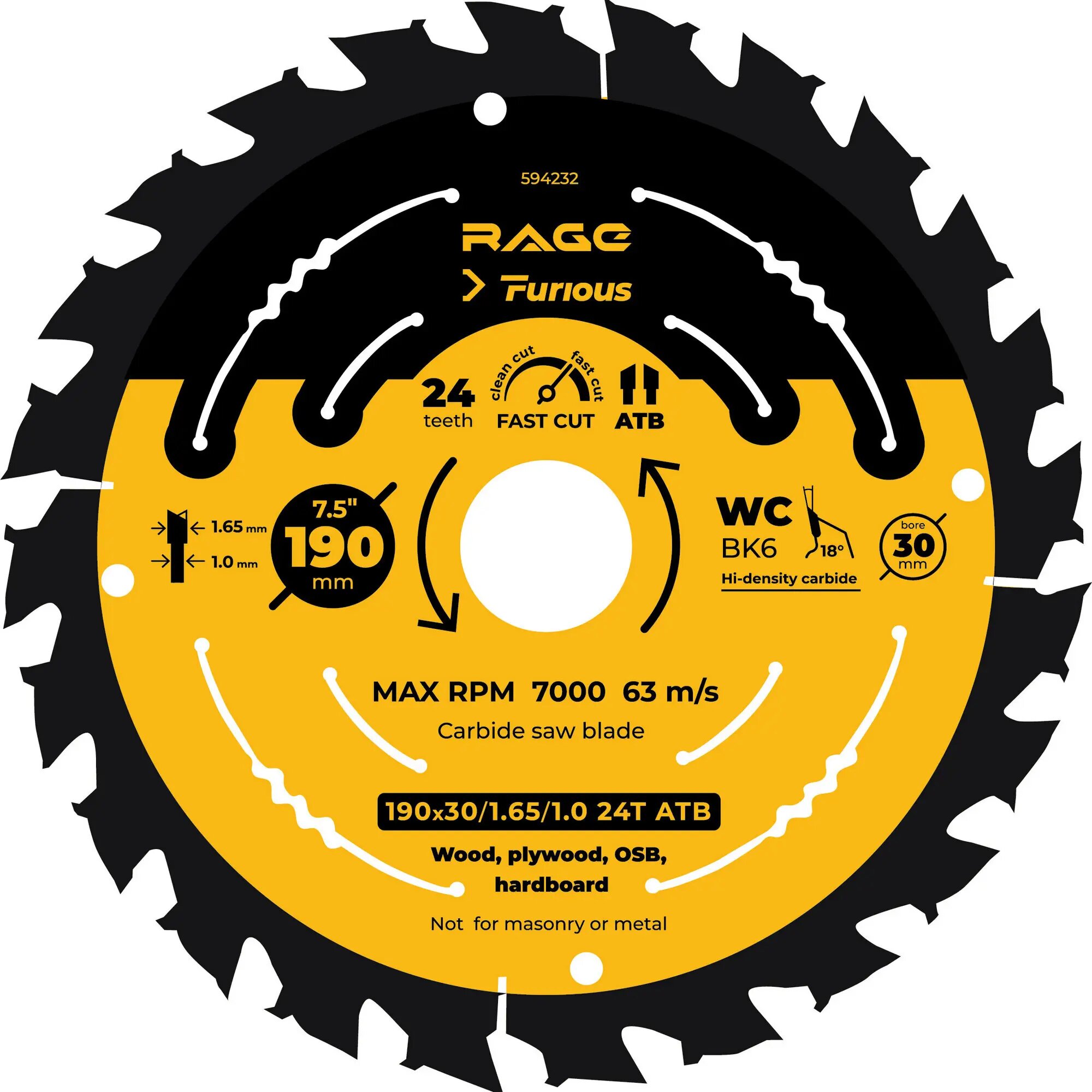 Диск пильный по дереву Rage Furious 24Т 190x30x1 мм (190/24)
