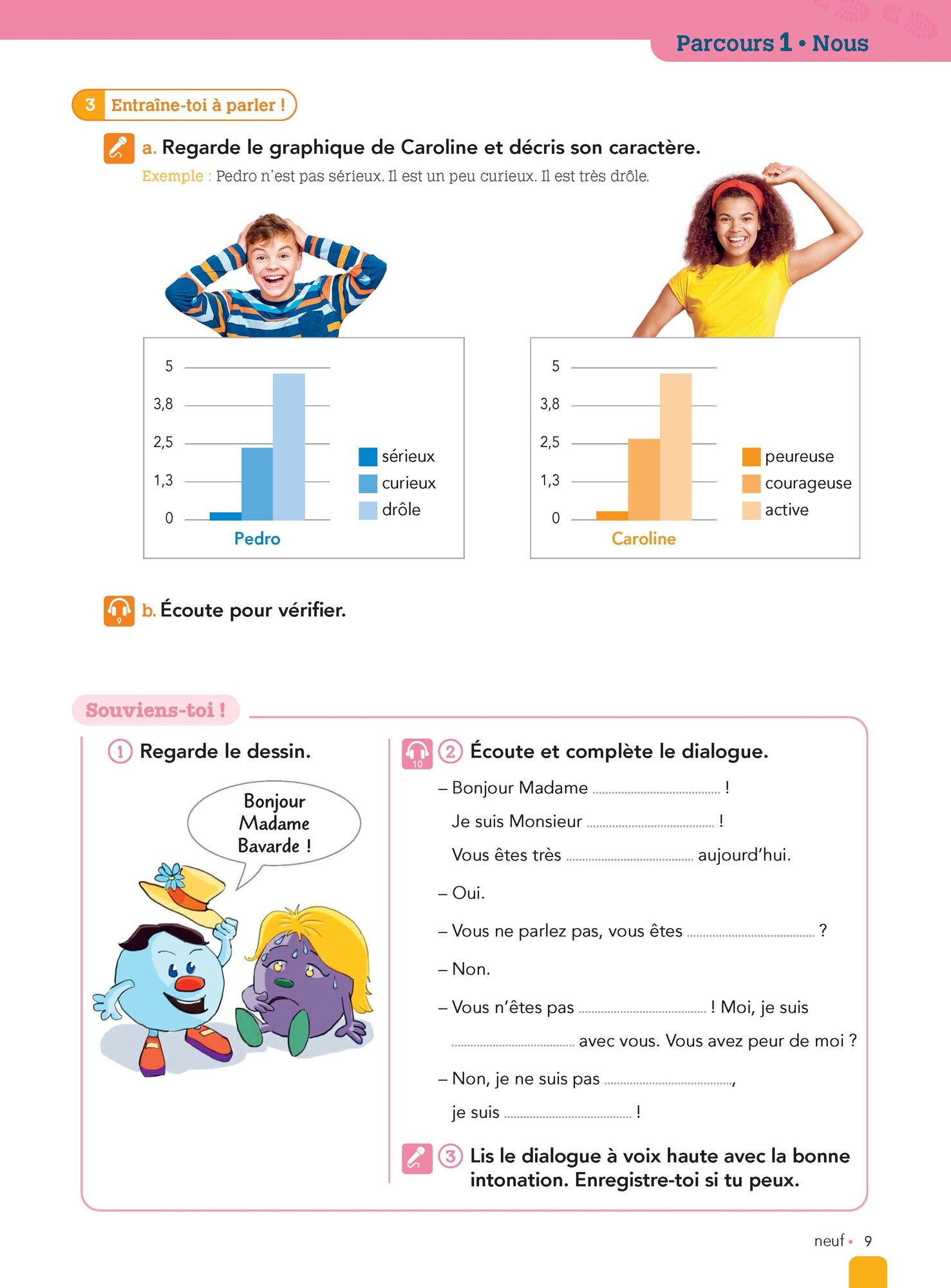La large place accordee a l’oral encourage la prise de parole et des encadres dedies a la decouverte de la langue favorisent la memorisation.