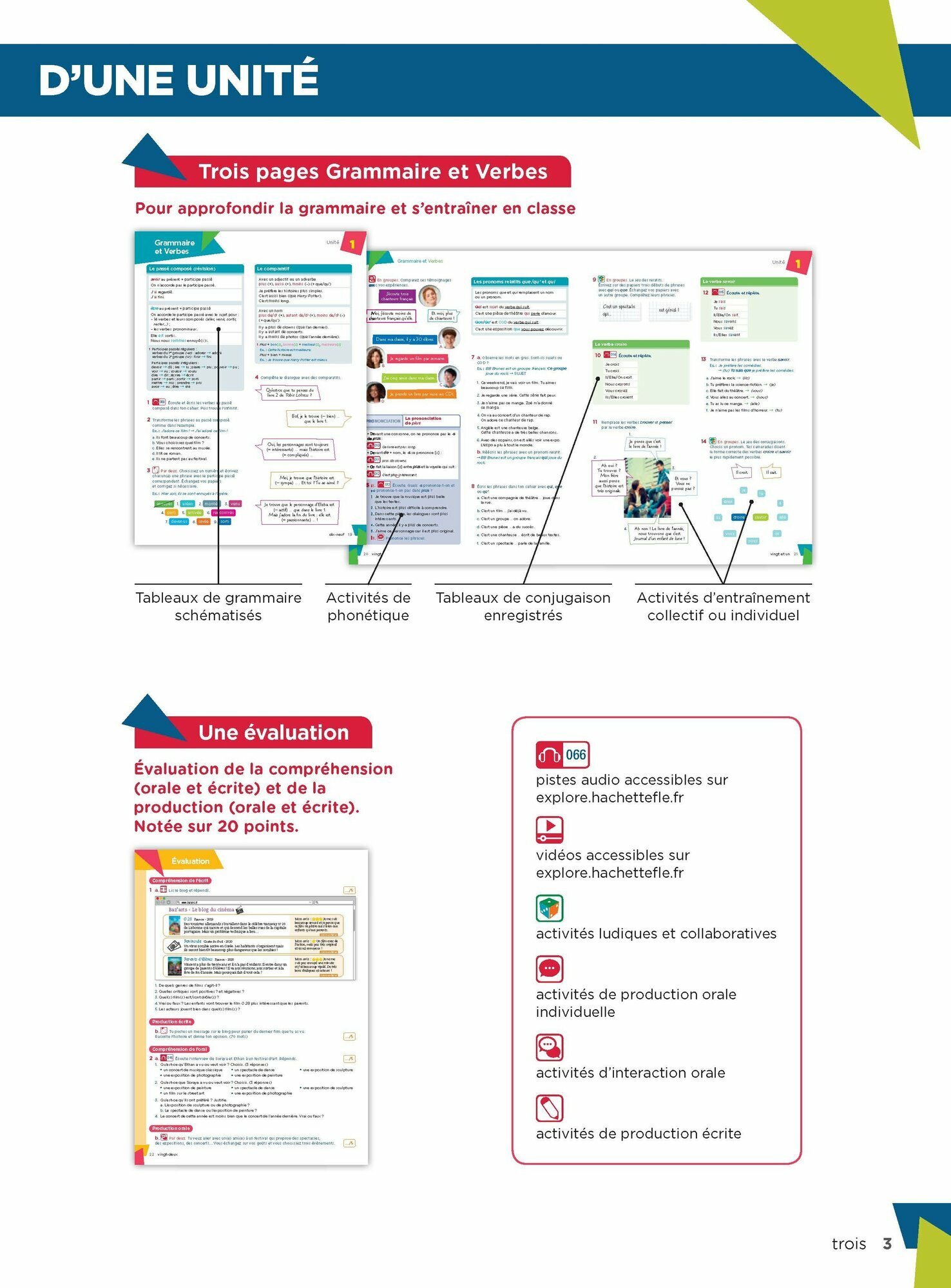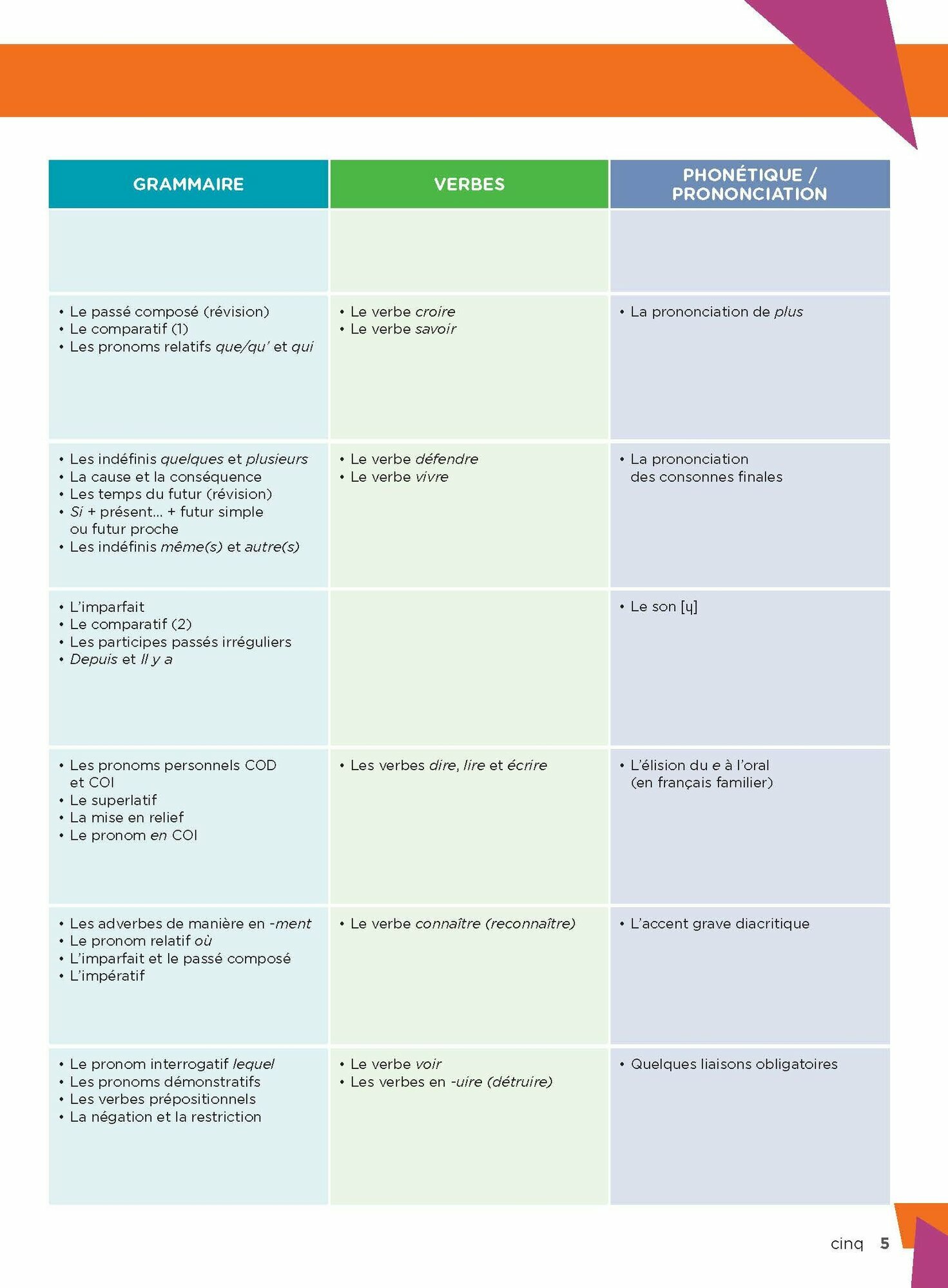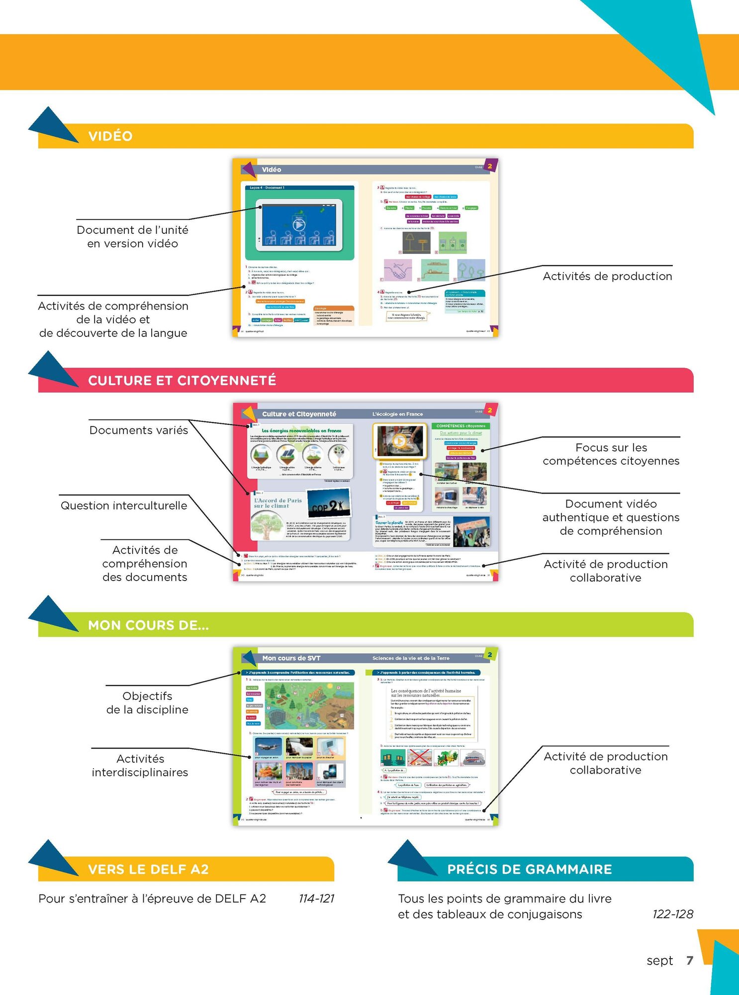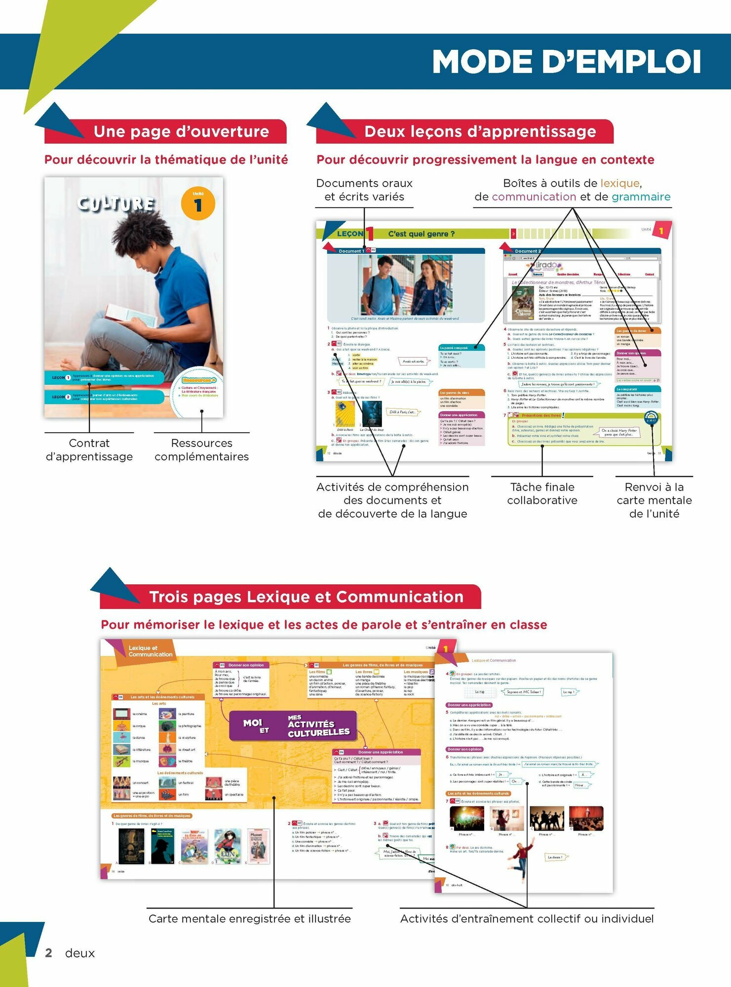 Un travail linguistique facilite grace a des boites a outils dans les lecons, des pages "Lexique et Communication" et "Grammaire et Verbes" et une approche tres progressive pour favoriser la decouverte de la langue et la memorisation.