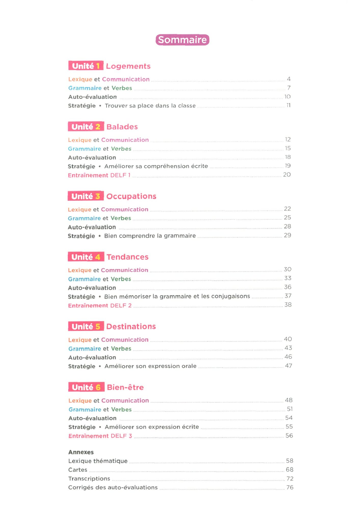 1 page «Strategie» a la fin de chaque unite pour accompagner les eleves dans leur choix des methodes d’apprentissage.