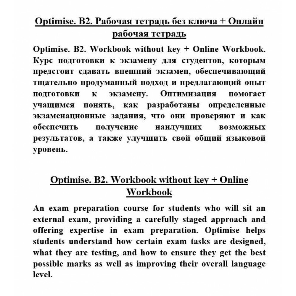 Сервис сравнения цен СкидкаГИД предлагает сравнить цены на товар «Книга: Optimise. B2. Workbook without Key with Online Workbook (Bandis Angela; Reilly Patricia); MacMillan, 2021»