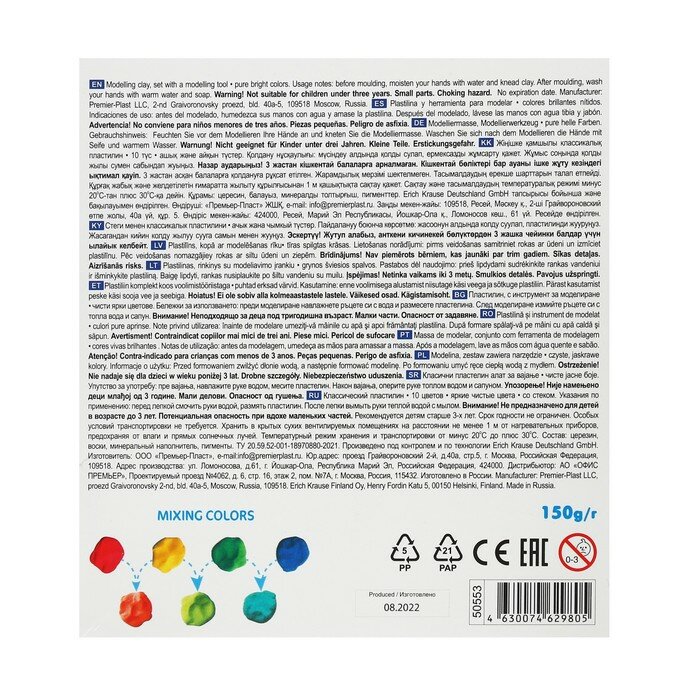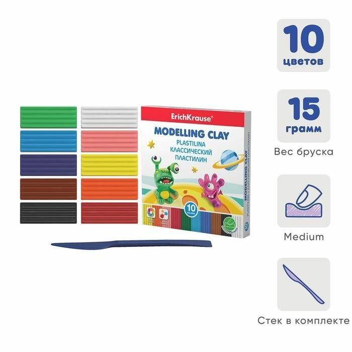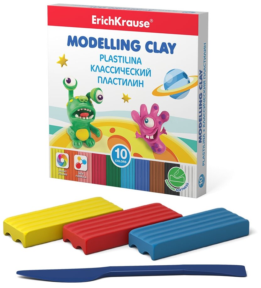 Классический пластилин ErichKrause® с новой улучшенной формулой, ярких востребованных цветов предлагается в картонной коробке в комплекте со стеком для декорирования. Хорошая пластичность и средний уровень мягкости пластилина позволяют применять его для развития сенсорных навыков и тренировки мелкой моторики ребенка. Пластилин изготовлен из безопасных компонентов высокого уровня качества, не пачкает руки, не имеет запаха. Индивидуальная упаковка бруска «flow-pack» надежно сохраняет товарный вид и пластичные свойства продукта.