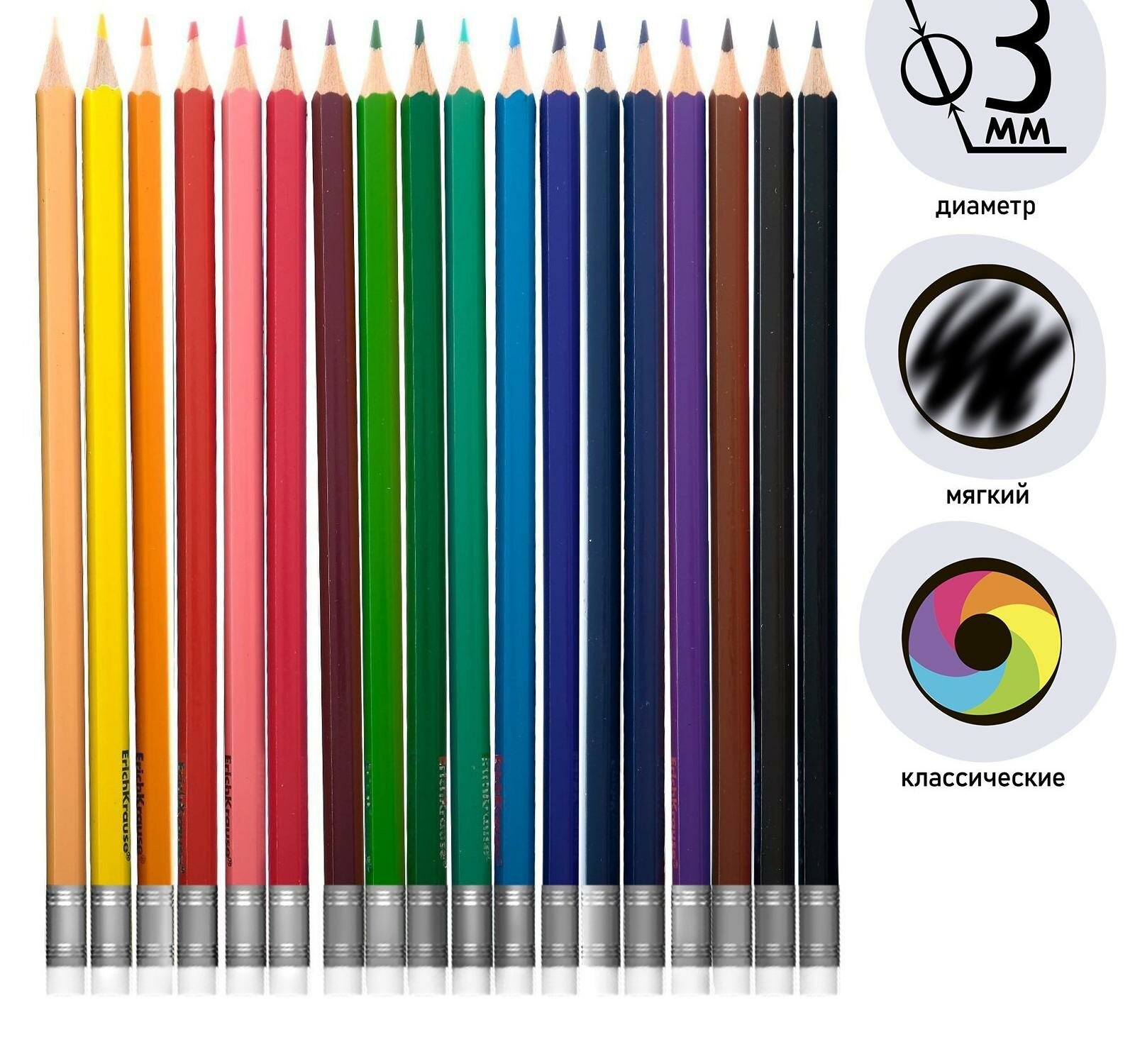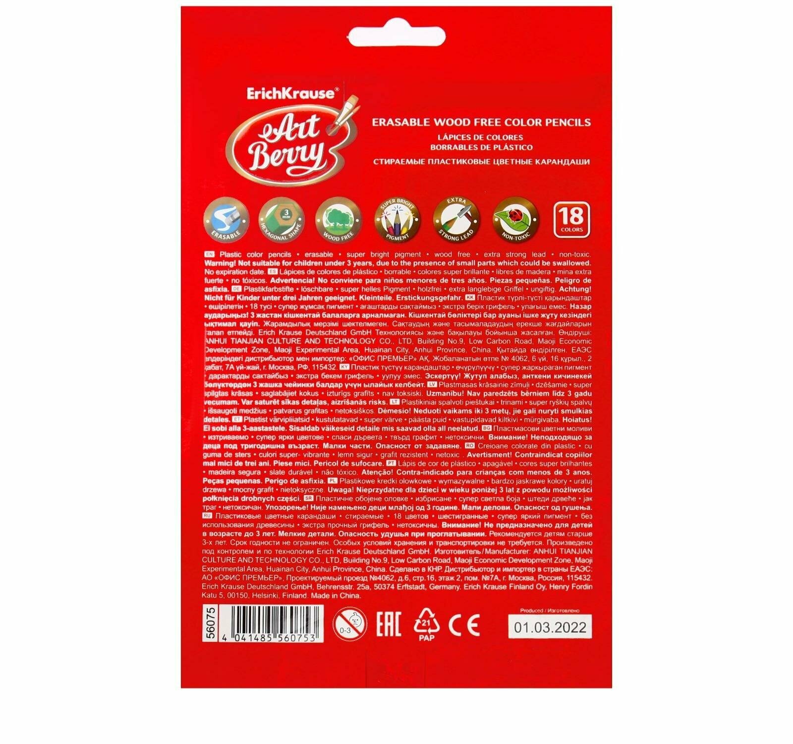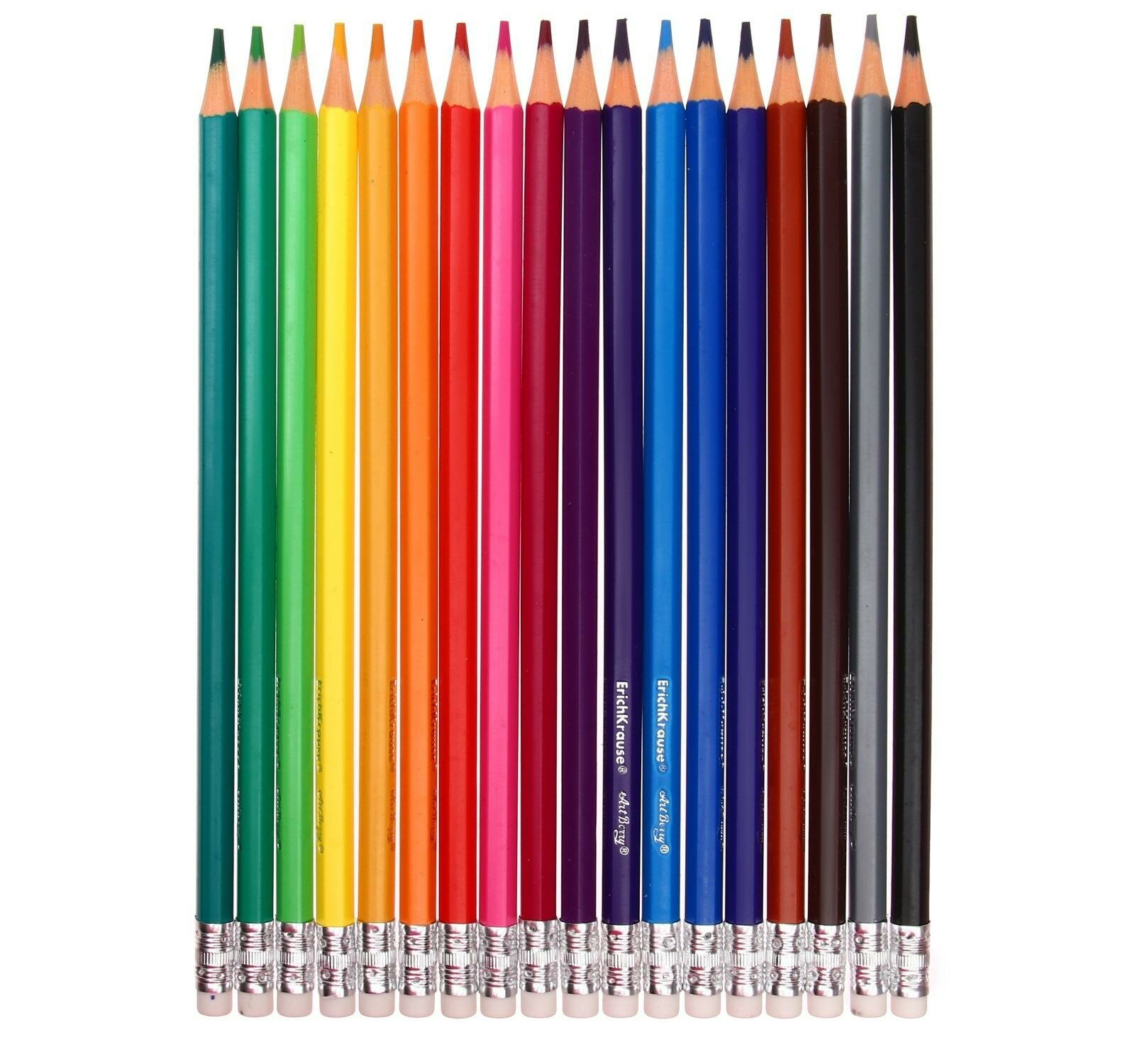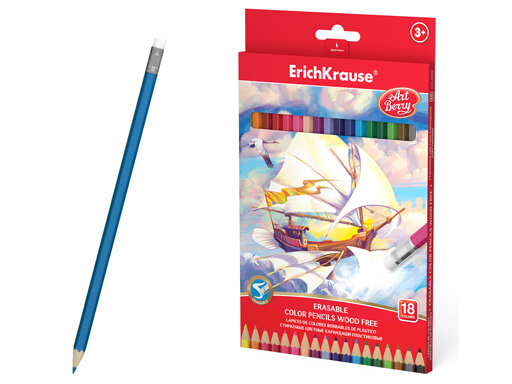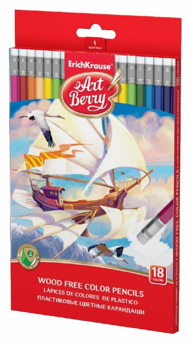 Карандаши шестигранные с ластиком ArtBerry 18 цветов Erich Krause